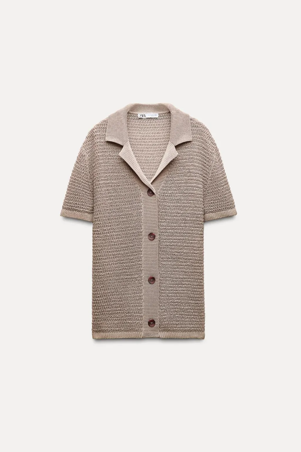 Chaqueta amplia estilo polo de cuello solapa y manga corta. Cierre frontal con botones.