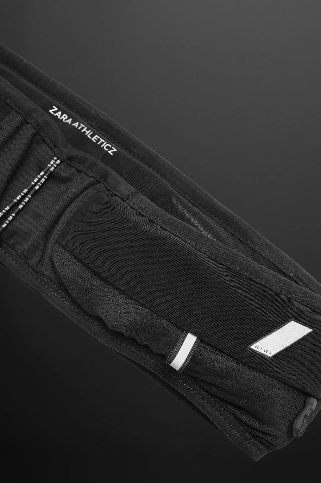 Cinturón deportivo. Fabricado en tejido técnico transpirable con detalles reflectantes. Cuenta con dos bolsillos frontales y uno trasero con cierre mediante cremallera. Ajuste mediante cinta elástica ajustable.