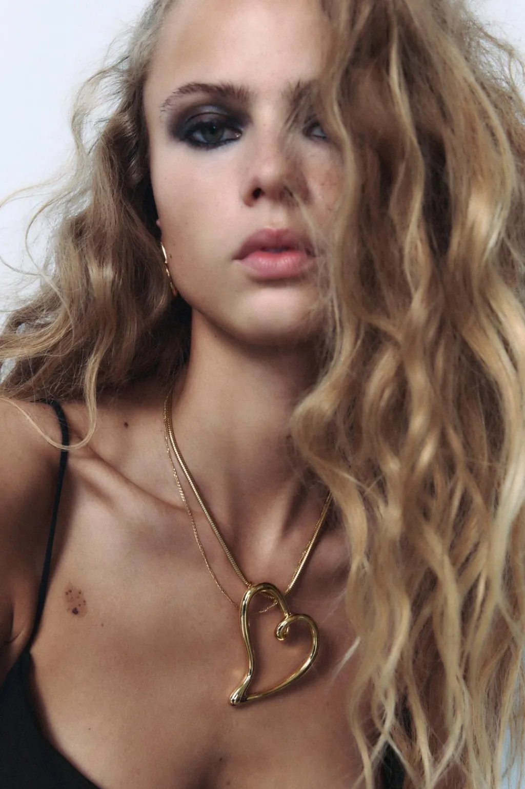 Collar metálico tipo cordón con colgante en forma de corazón en relieve. Cierre con mosquetón.