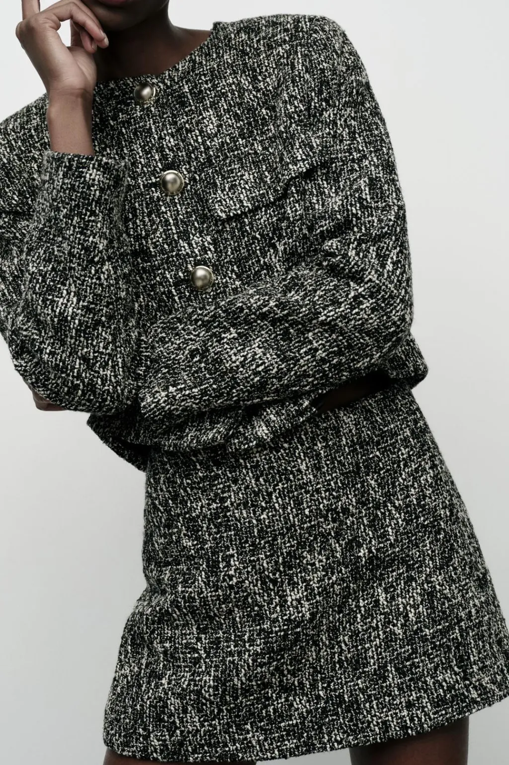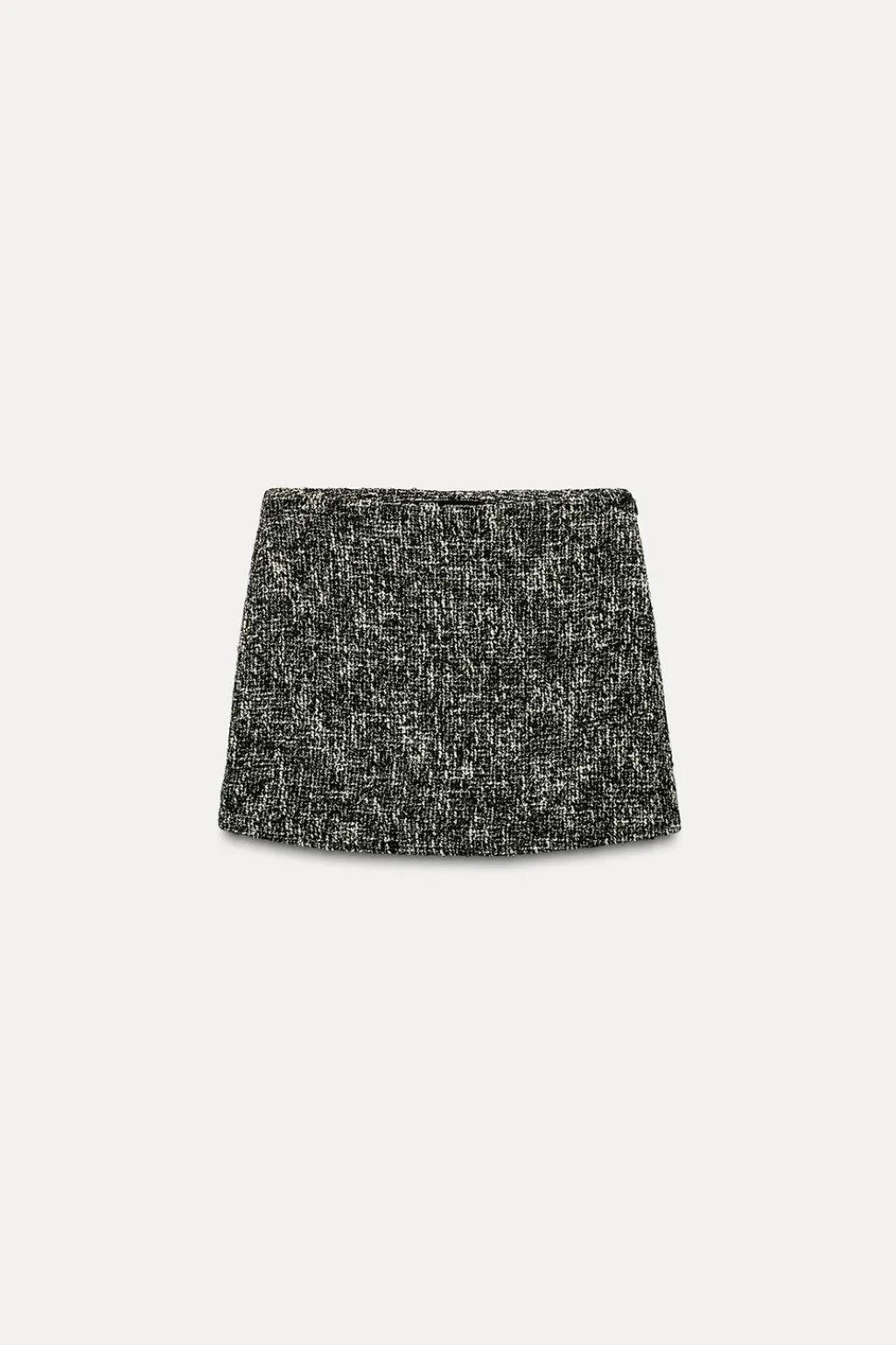 Falda pantalón de tiro alto con cremallera lateral oculta en costura.