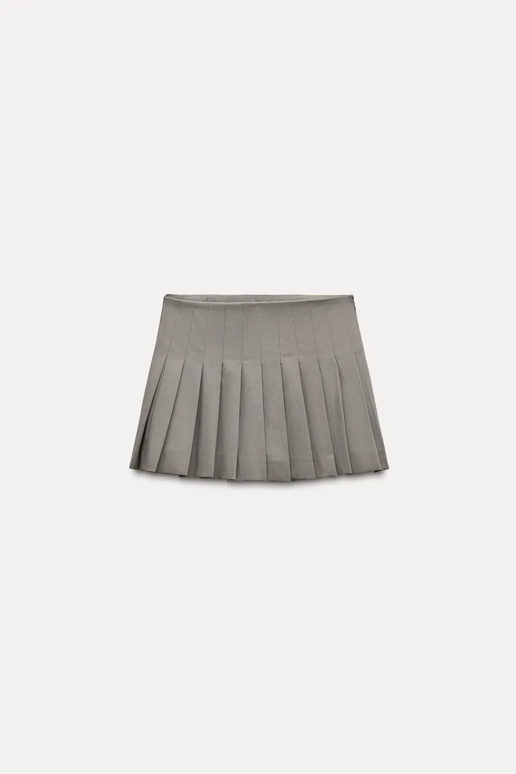 Falda pantalón de tiro medio. Detalle de tablas Cierre lateral con cremallera oculta en costura.