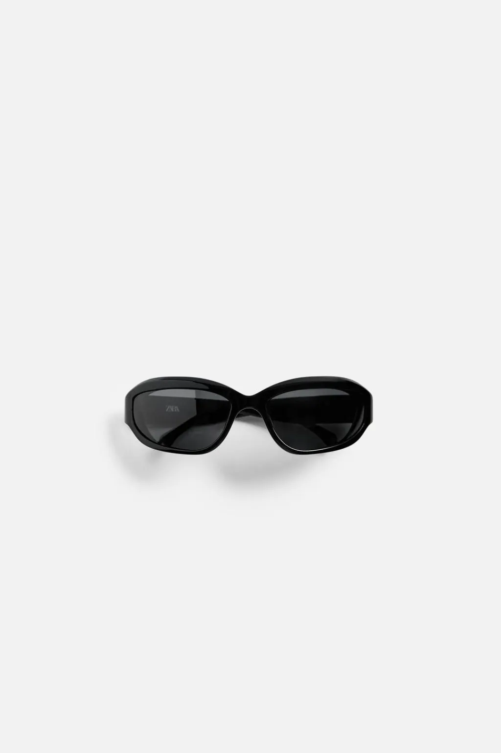 Gafas de sol con montura rectangular en acetato. Lentes polarizadas. Incluye funda.
