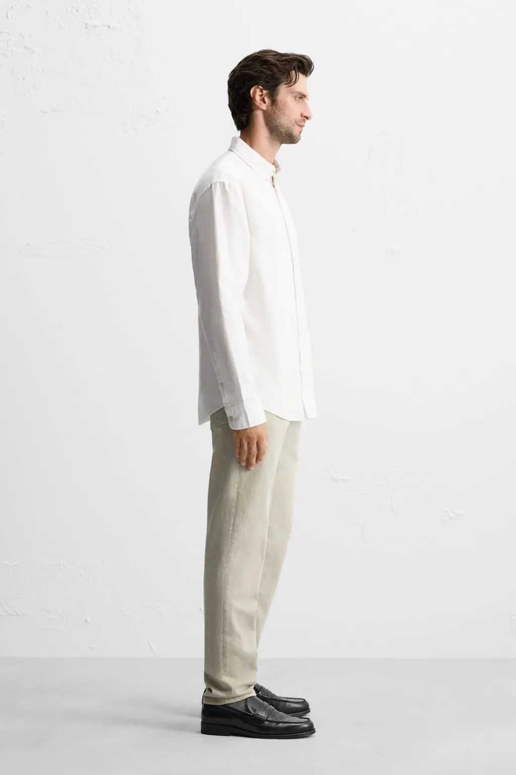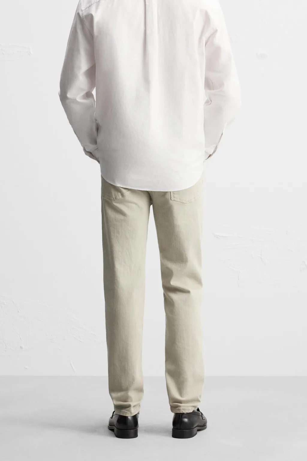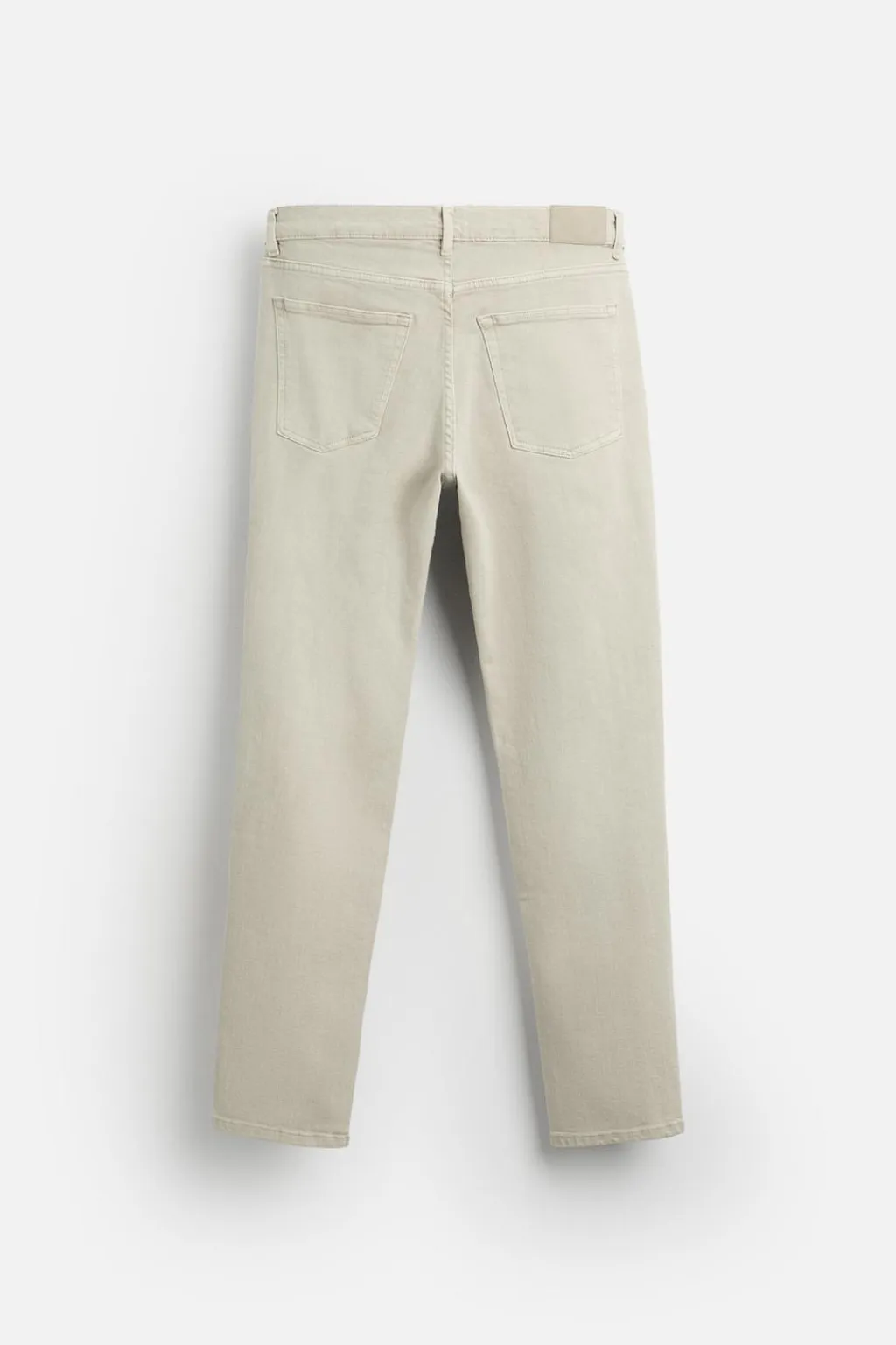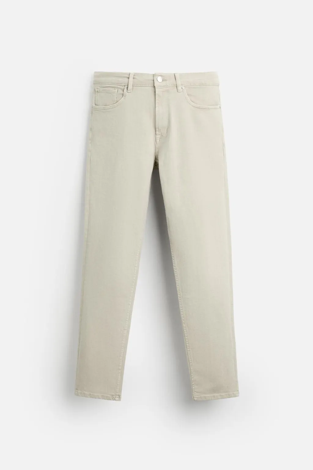 Jeans slim fit. Cinco bolsillos. Cierre frontal con cremallera y botón.