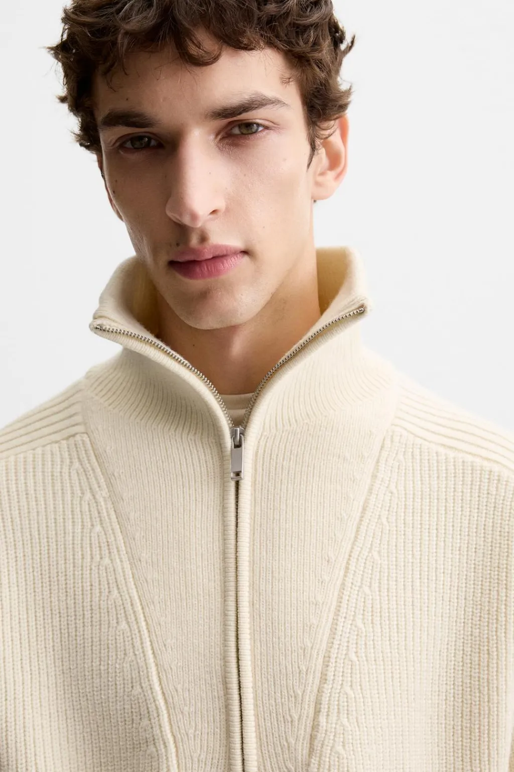 Jersey reglar fit. Cuello perkins con cierre frontal de cremallera. Manga larga. Acabados en rib.