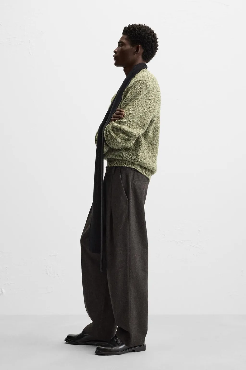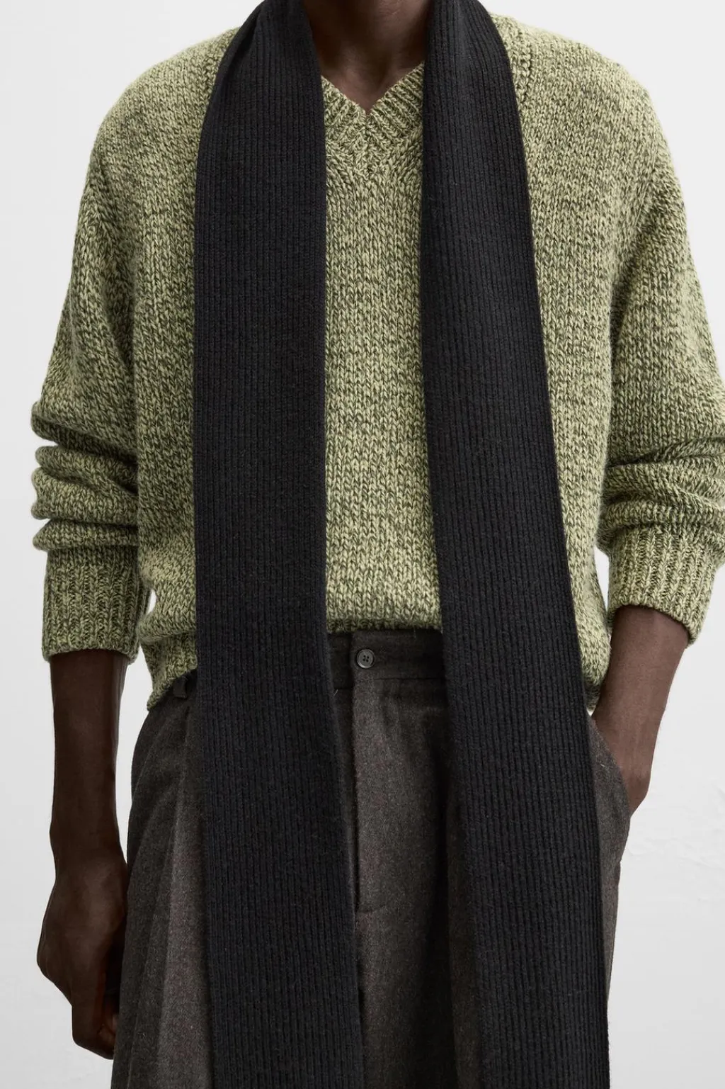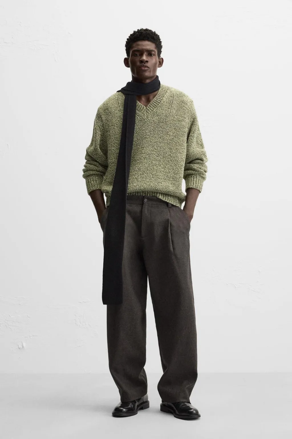 Jersey relaxed fit. Cuello pico y manga larga. Acabados en rib.
