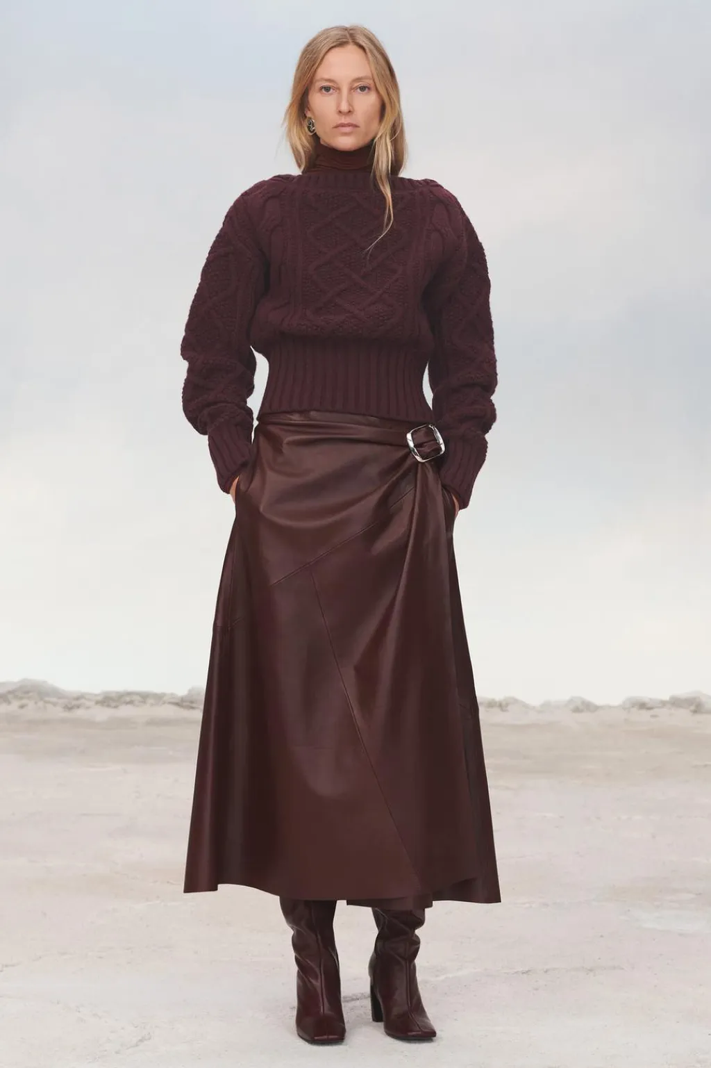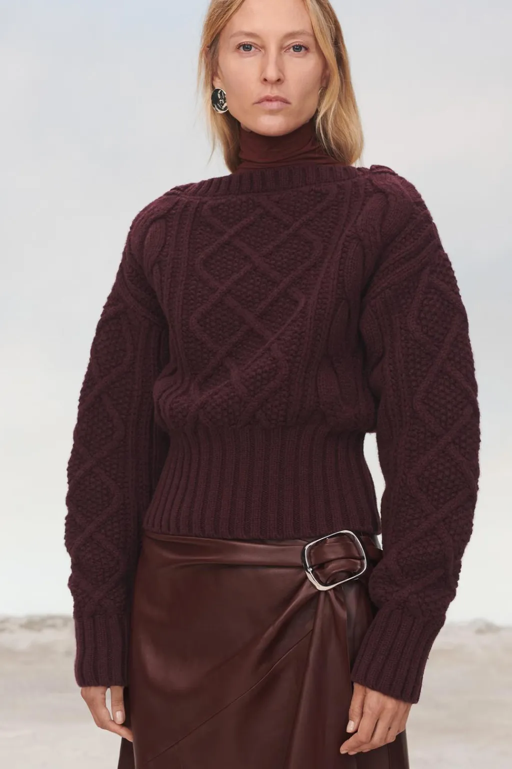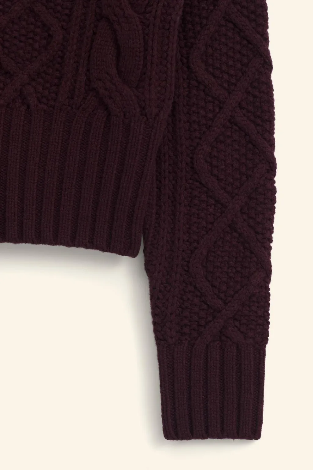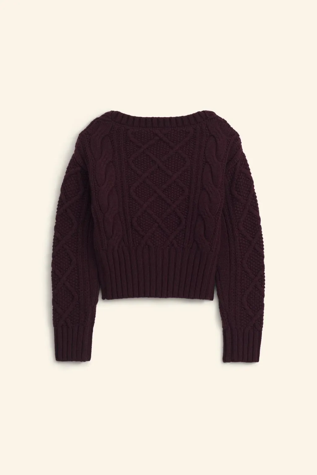Jersey corto confeccionado en hilatura de lana 100%. Cuello redondo y manga larga. Detalle de ochos en mismo tejido. Acabados en rib a tono.
