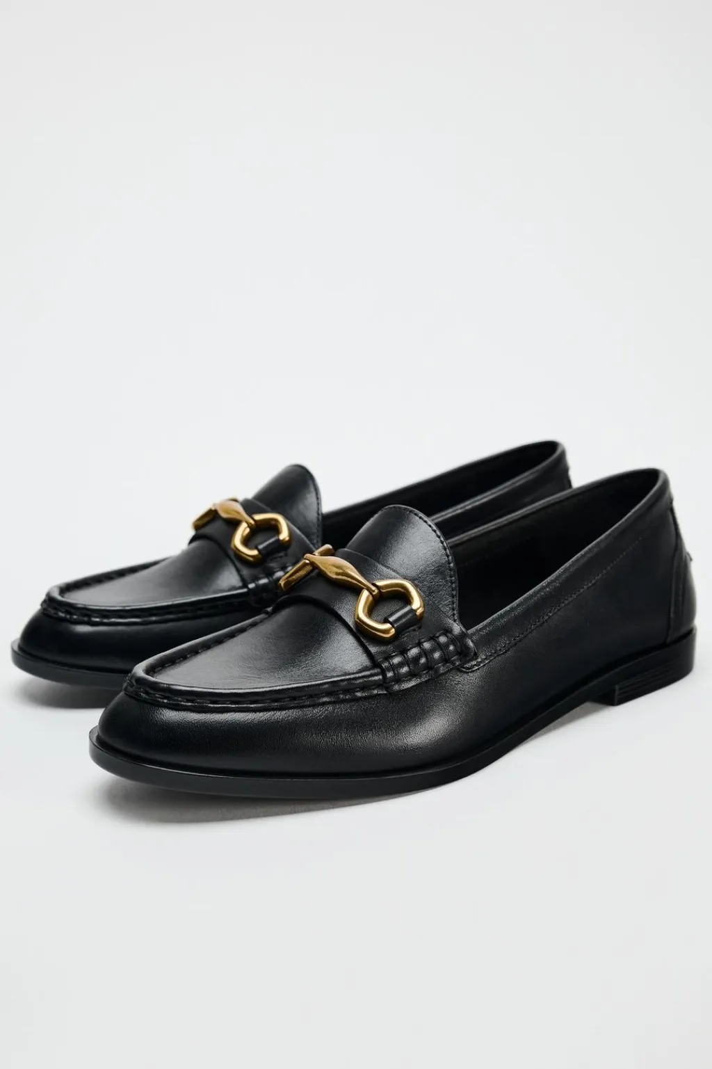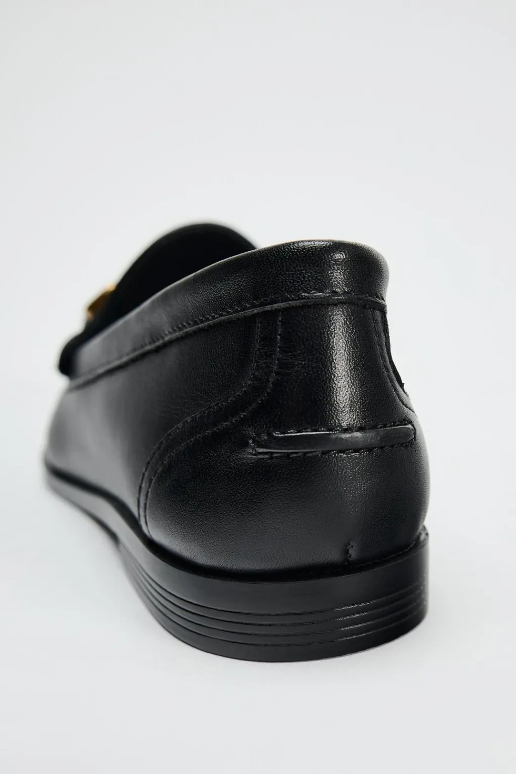 Zapato tipo mocasín en piel. Detalle de hebilla en el empeine. Acabado en punta redonda.