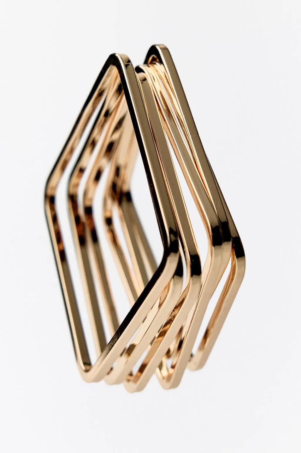 Pack de múltiples pulseras metálicas cuadradas en relieve.