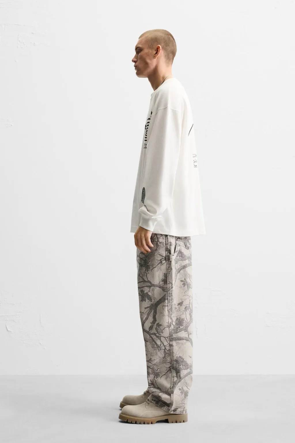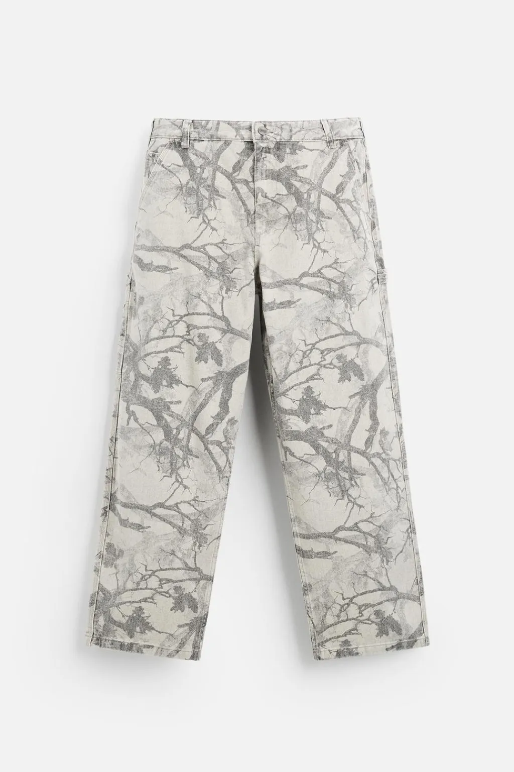 Pantalón relaxed fit. Bolsillos frontales y detalle de bolsillos traseros de plastrón. Aplicación de bolsillos plastrón y tira multifunción en perneras. Efecto lavado. Cierre frontal con cremallera y botón.