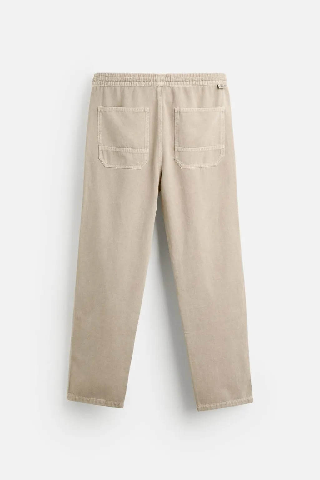 Pantalón relaxed fit. Cintura elástica ajustable con cordón. Bolsillos frontales y detalle de bolsillos traseros de plastrón. Efecto lavado.