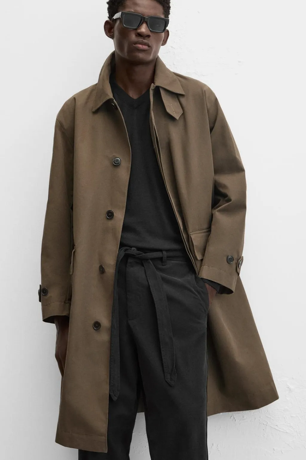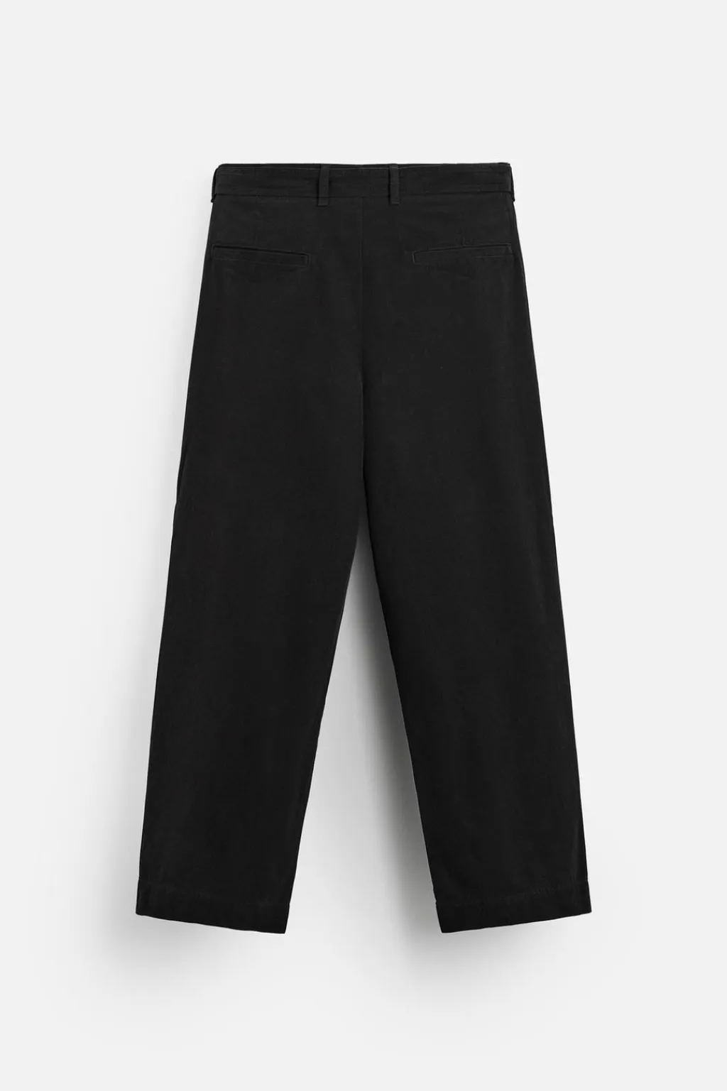 Pantalón relaxed fit confeccionado en tejido con mezcla de algodón y lyocell. Cintura ajustable con cinturón del mismo tejido. Bolsillos laterales y detalle de bolsillos traseros de vivo. Cierre frontal con cremallera y botón.