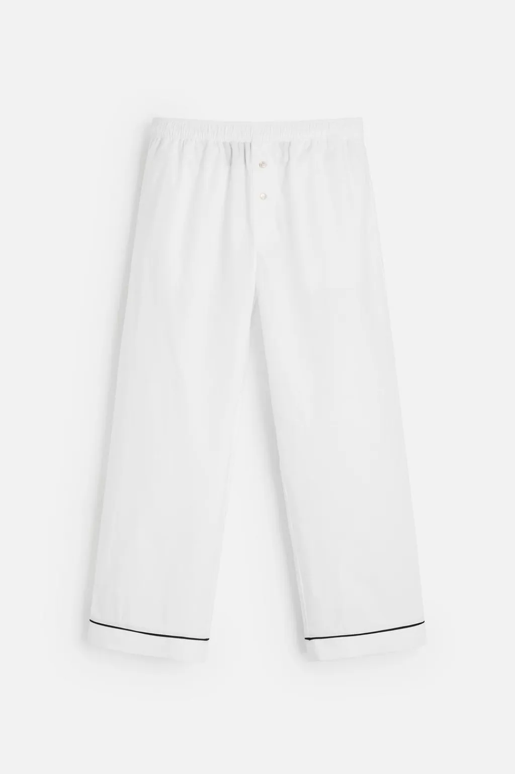 Pantalón relaxed fit confeccionado en tejido de algodón. Cintura elástica. Bajo con detalle de vivo combinado a contraste.