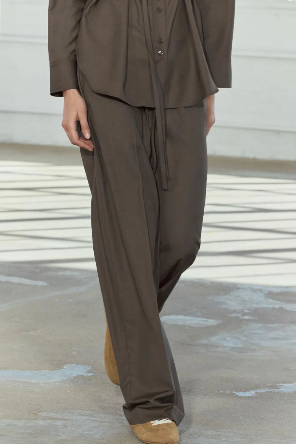 Pantalón de tiro medio y cintura con elástico ajustable con cordones. Bolsillos en delantero y espalda. Detalle de raya plancha en delantero. Pierna recta.