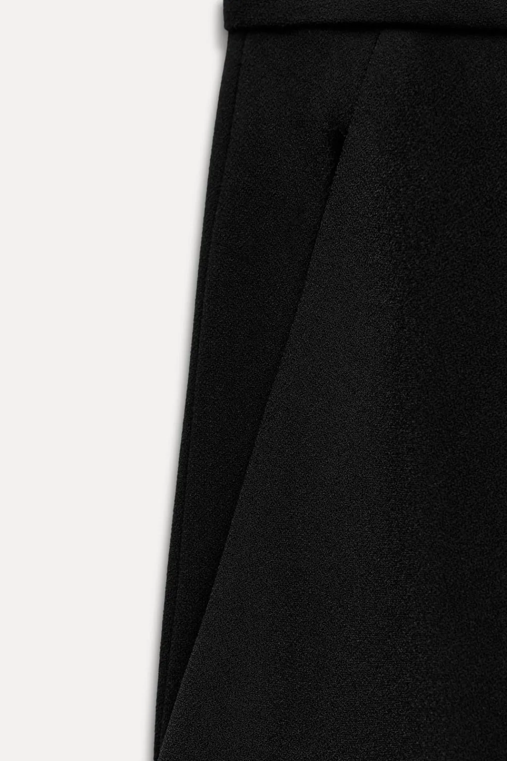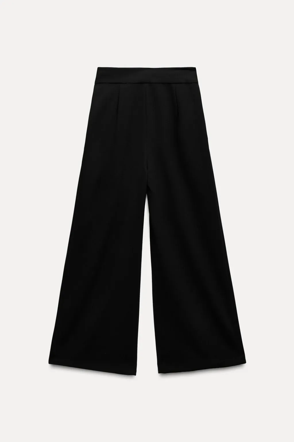 Pantalón tobillero de tiro medio y cintura con trabillas. Bolsillos laterales. Detalle de pinzas en delantero. Pierna ancha. Cierre frontal con cremallera y botones.