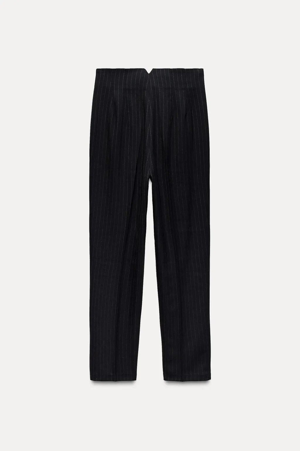 Pantalón tobillero de tiro alto. Bolsillos delanteros de vivo. Cierre frontal con cremallera, botón interior y gancho metálico.