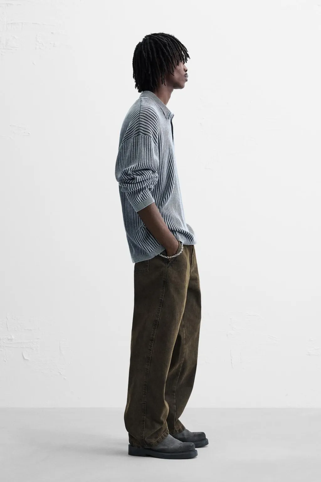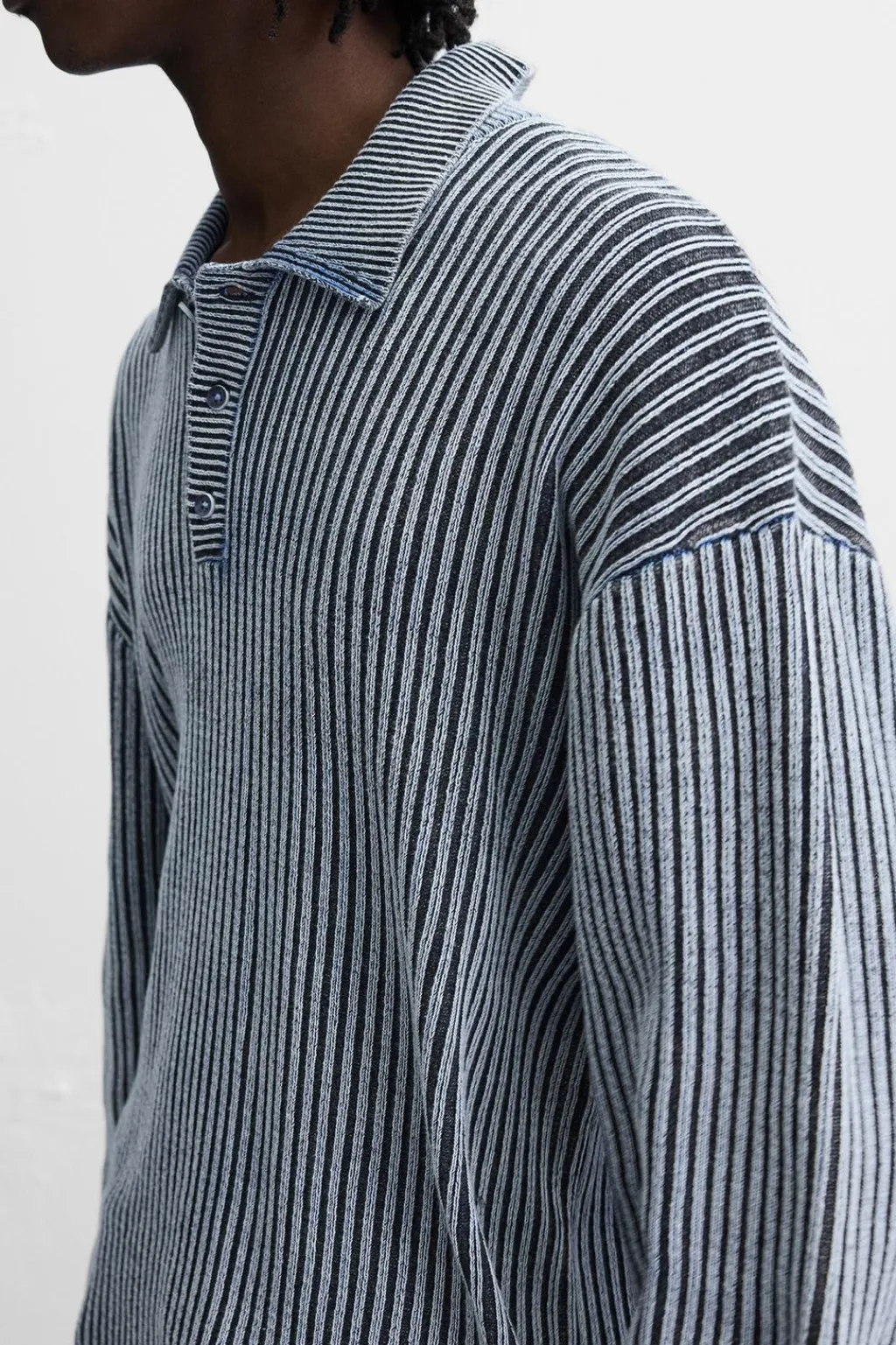 Polo de punto tejido en hilatura de algodón. Cuello solapa con cierre frontal de botonadura. Manga larga. Efecto lavado.