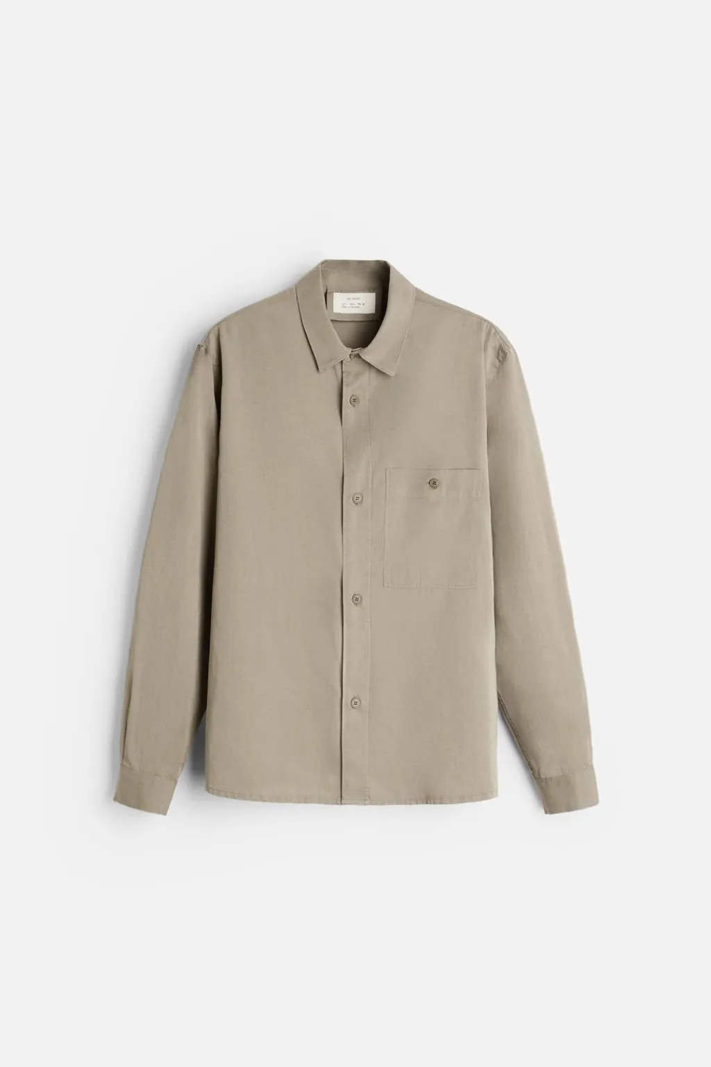 Sobrecamisa regular fit confeccionada en tejido con mezcla de lyocell, algodón y lino. Cuello solapa y manga larga acabada en puño con botón. Bolsillo plastrón con botón en pecho. Cierre frontal de botonadura.