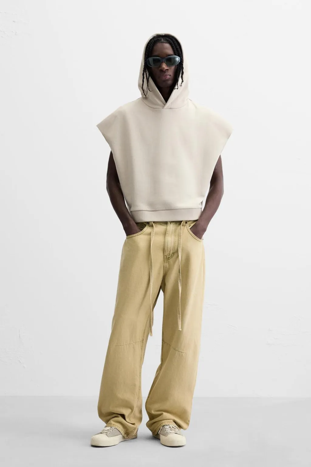 Sudadera boxy fit. Cuello con capucha y manga sisa. Efecto lavado. Bajo con aberturas laterales. Acabados en rib.