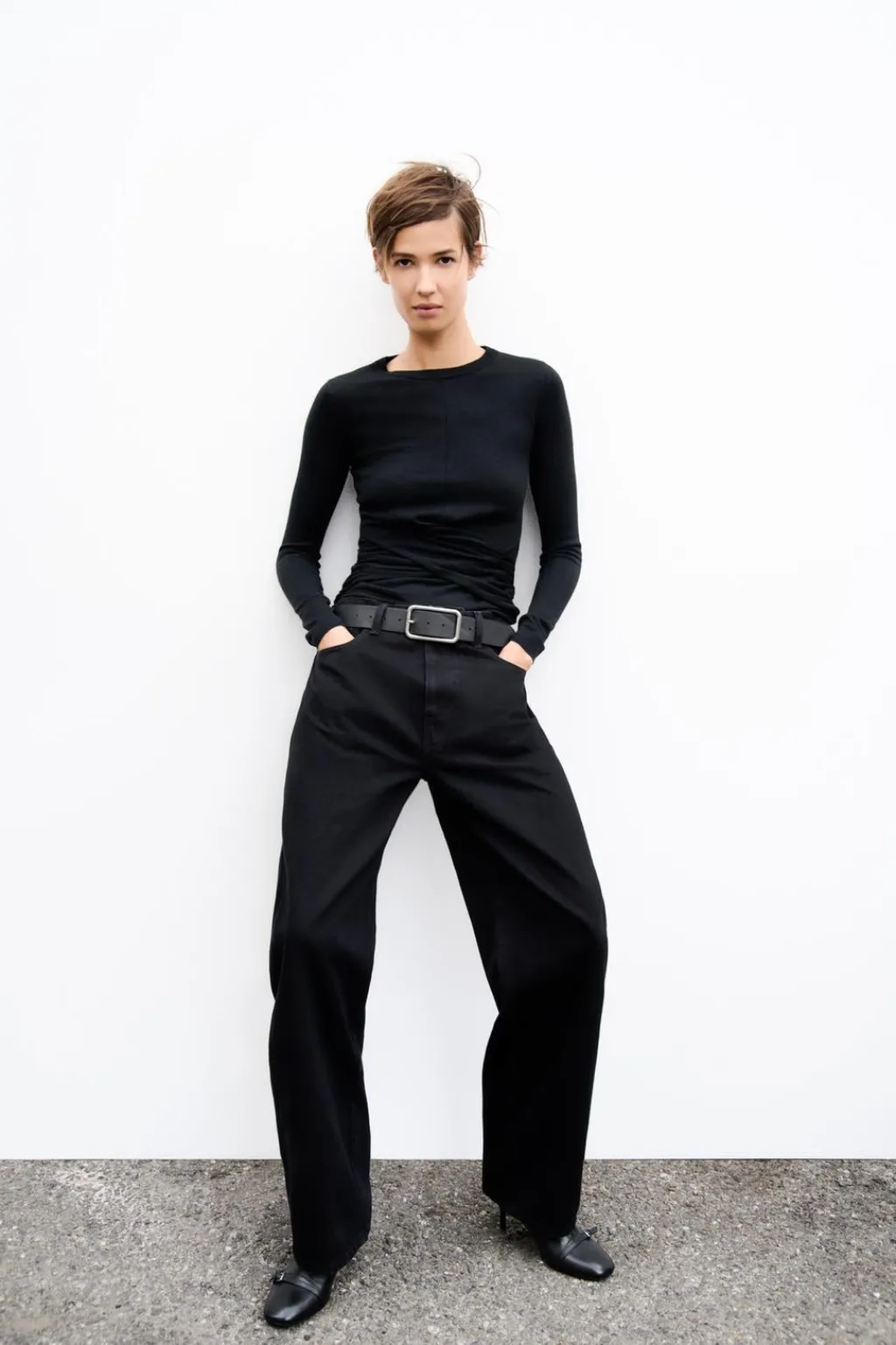 Top de cuello redondo y manga larga. Detalle de delantero cruzado.