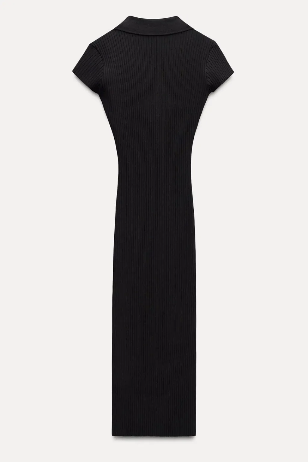 Vestido midi confeccionado en canalé. Cuello solapa tipo polo y manga muy corta acabada sin costura.
