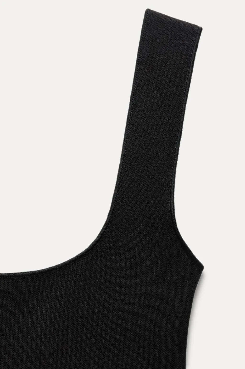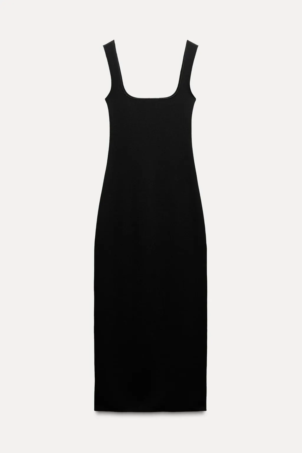 Vestido midi entallado confeccionado en tejido tipo punto de escote cuadrado y tirantes anchos.