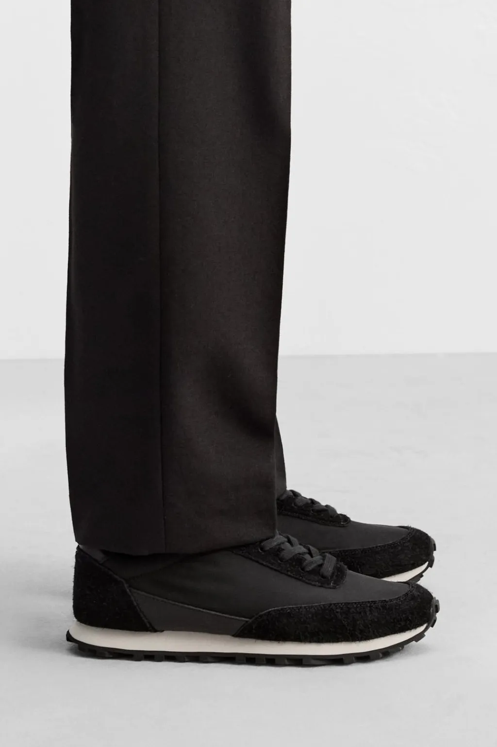 Zapatilla deportiva de inspiración retro. Parte superior fabricada en tejido técnico con detalles en piel con acabado serraje. Cordonera con seis pasados.