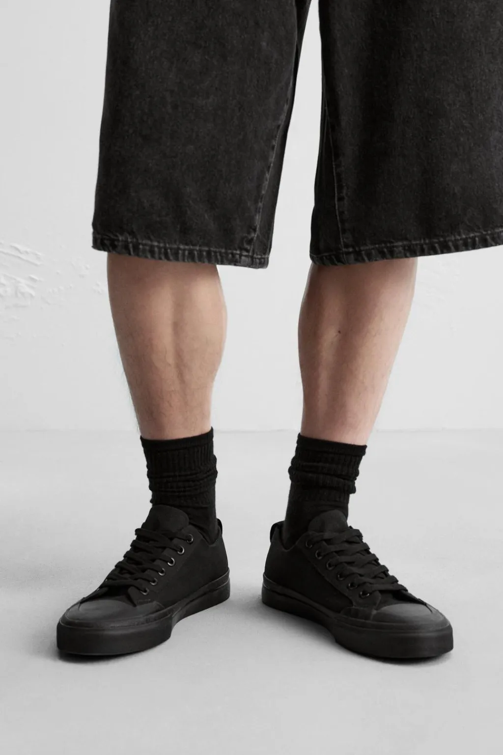 Zapatilla deportiva. Parte superior fabricada en tejido de algodón con detalle de goma en la punta. Cordonera con seis pasados. Tirador trasero para facilitar el calce. Suela a tono.