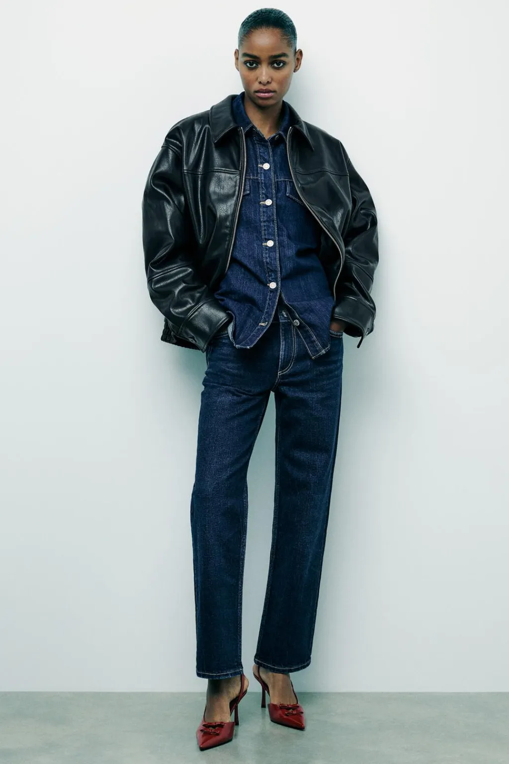 Zapato tipo destalonado efecto acharolado. Detalle de lazos en la parte delantera. Cierre mediante hebilla. Tacón fino. Acabado en punta.