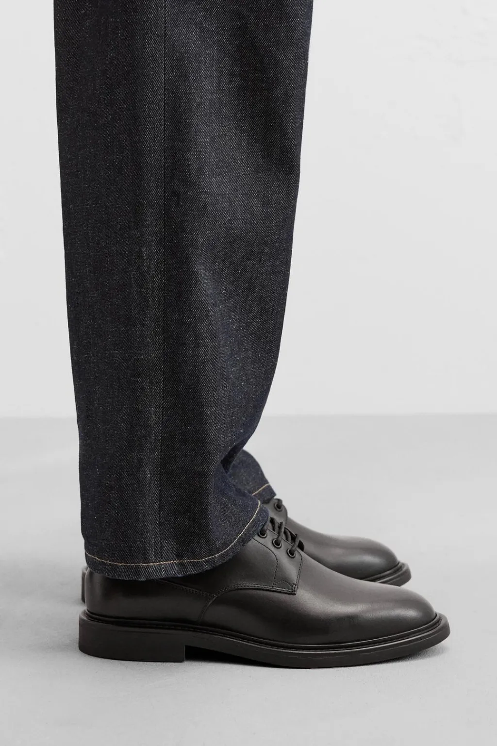 Zapato tipo derby. Cordonera con cuatro pasados. Suela a contraste. Estilo clásico. Punta redondeada.