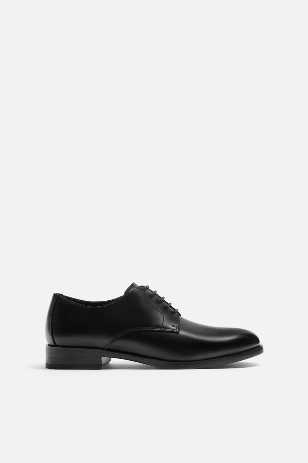 Zapato de vestir tipo derby. Cordonera con cinco pasados. Horma en punta. Suela con ligero tacón.