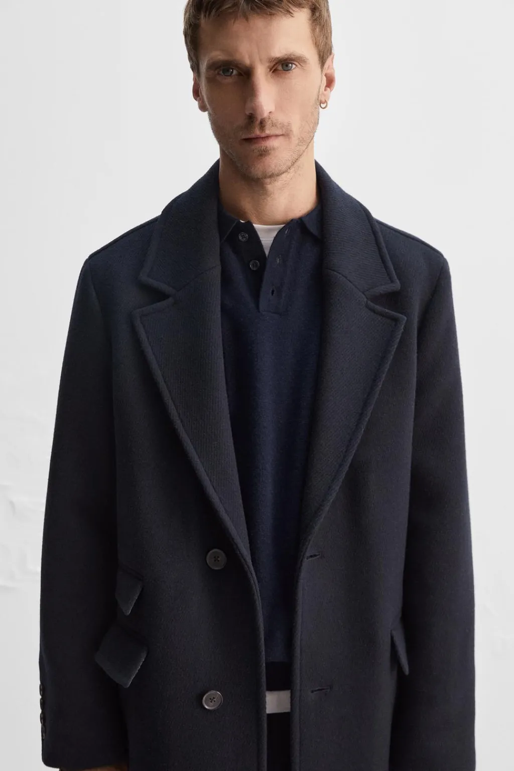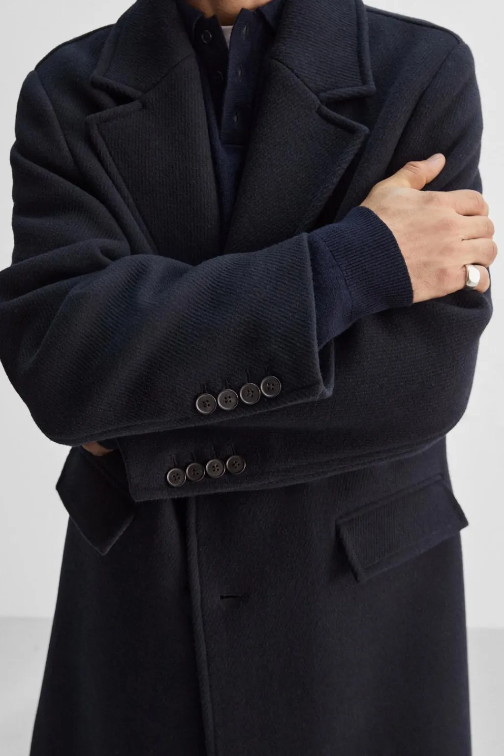 Abrigo relaxed fit confeccionado en tejido con lana. Cuello con solapas de muesca y manga larga acabada en puño con botones. Bolsillos con solapa en delantero. Bajo con abertura central en espalda. Cierre frontal de botonadura.