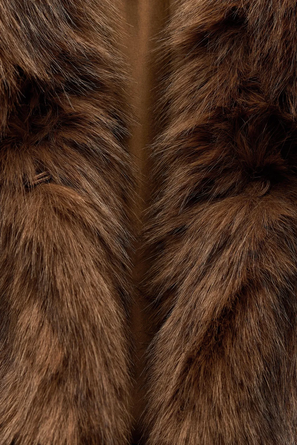 Abrigo de cuello con solapa y manga larga. Detalle de tejido efecto pelo.