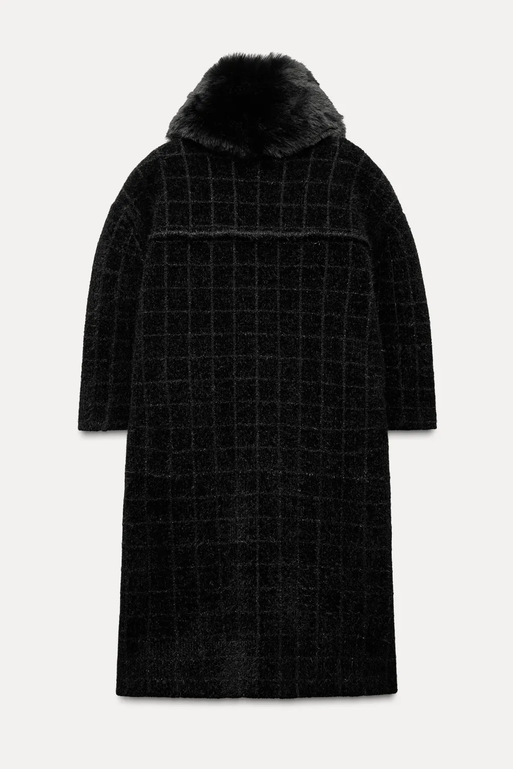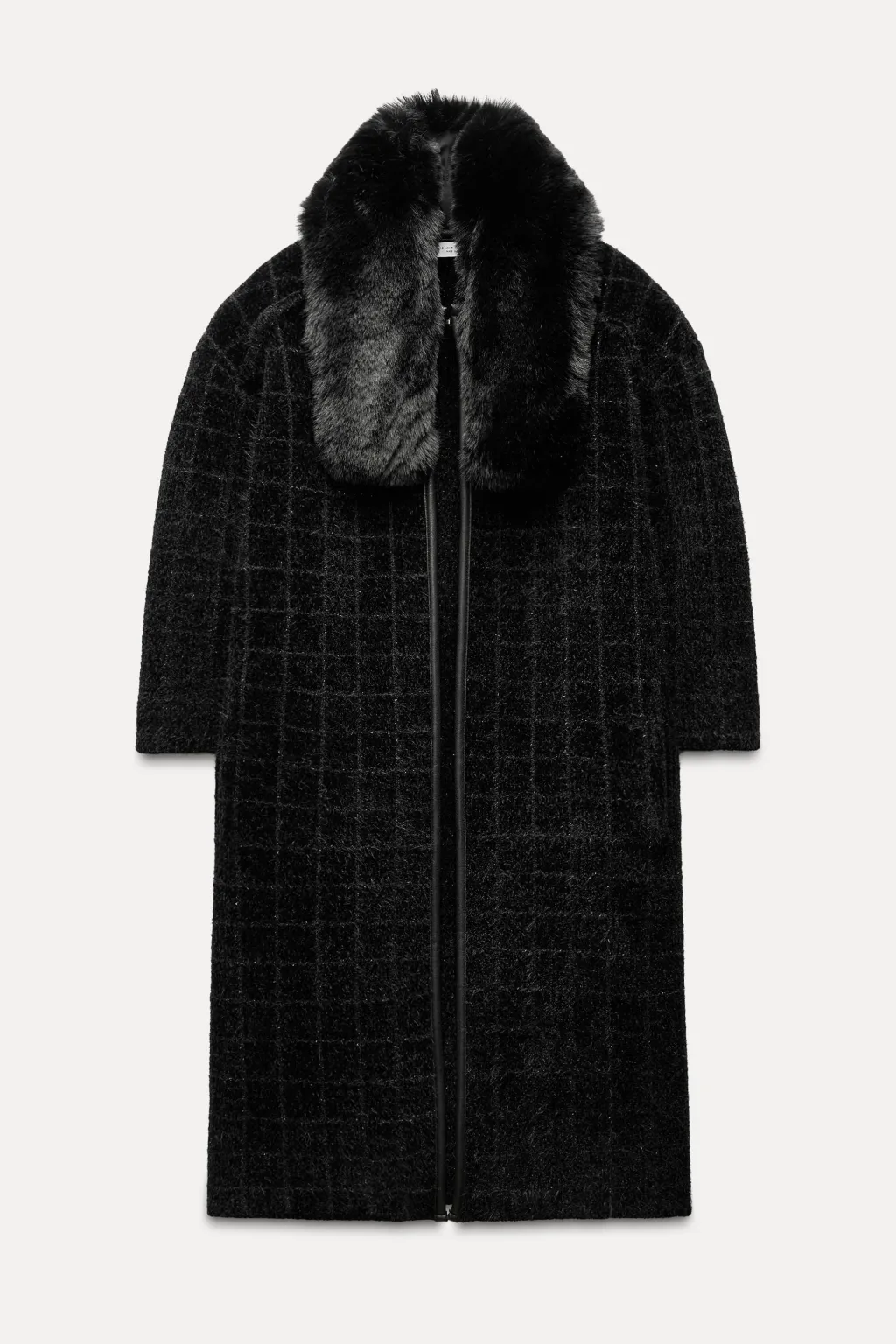 Abrigo de cuello con solapa desmontable efecto pelo y manga por debajo del codo. Bolsillos delanteros. Detalle de vivos efecto piel. Cierre frontal con gancho oculto.