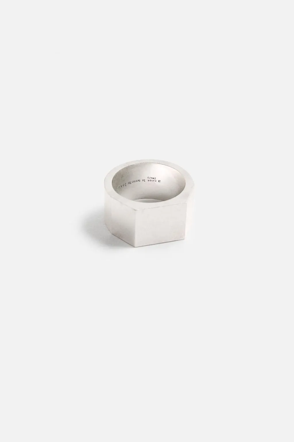 Anillo metálico tipo sello. Detalle de grabado en interior. Acabado con baño de plata 925 MM.