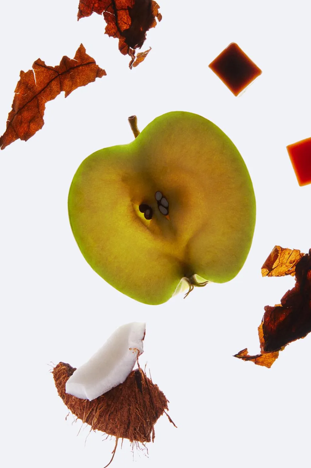 Una fragancia ambarada y amaderada con una sofisticada salida de notas frescas de manzana, agua de coco y bergamota, que combinan con acordes de tabaco y miel. Las notas dulces de praliné y vainilla se funden sobre el fondo licoroso.