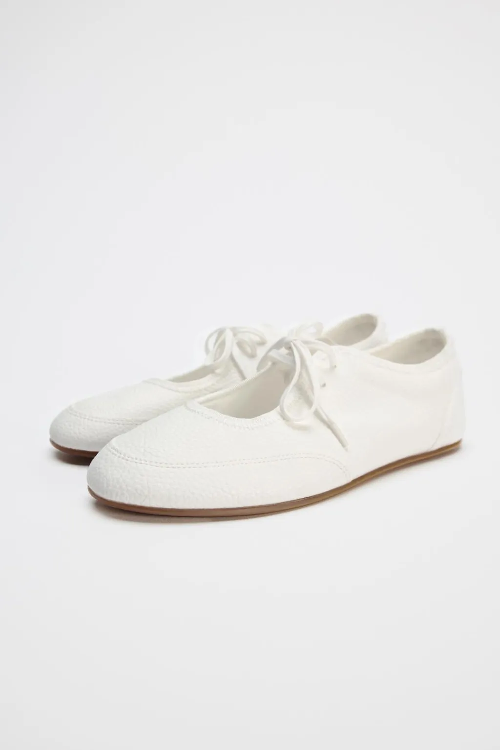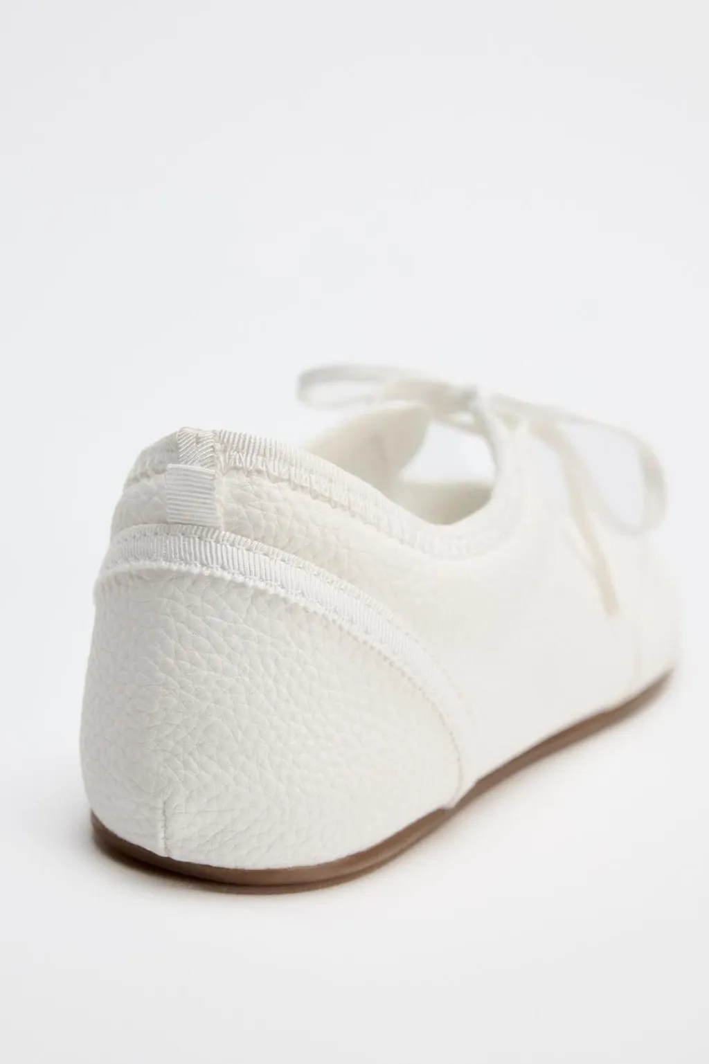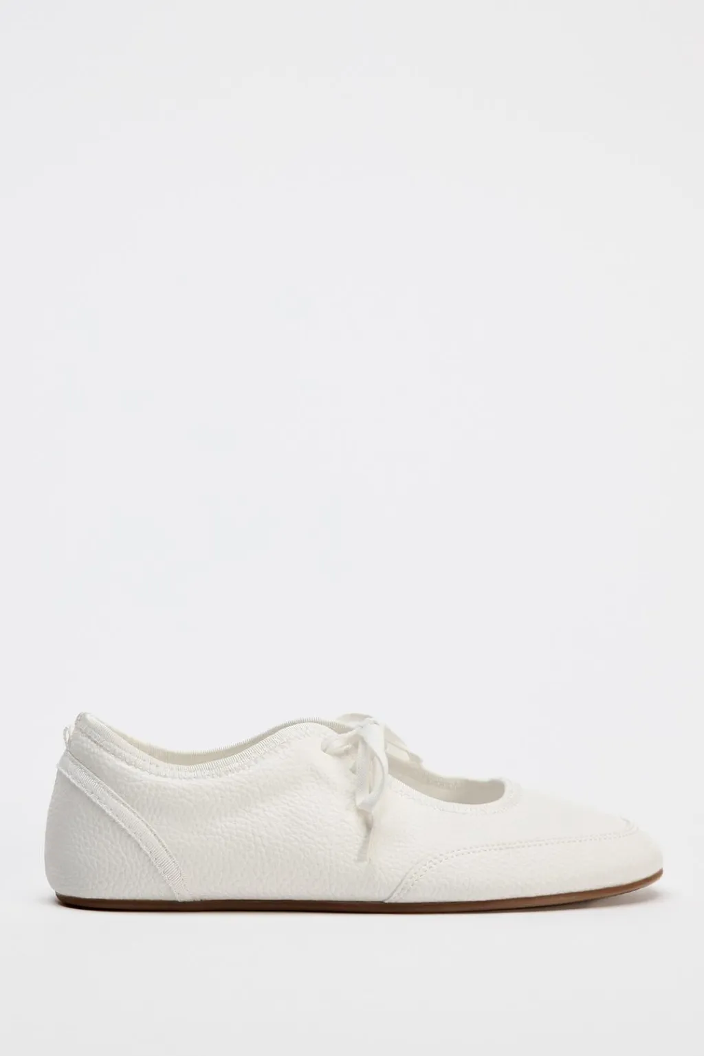 Zapato plano tipo bailarina. Detalle de abertura en la parte delantera. Cierre mediante cordones.