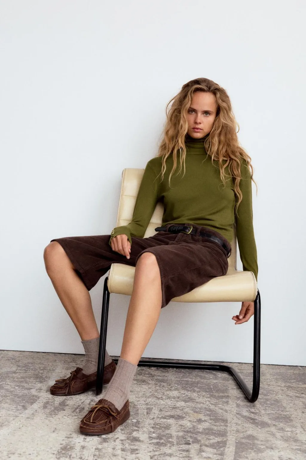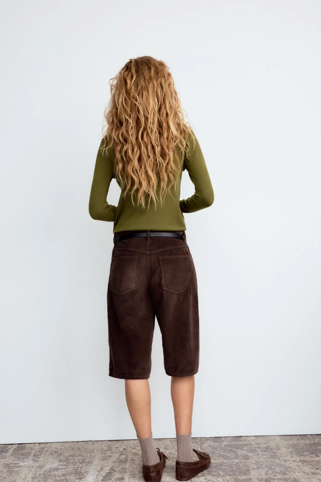 Bermuda jorts de tiro medio con trabillas. Bolsillos en delantero y de plastrón en espalda. Cierre frontal con cremallera y botón metálico.