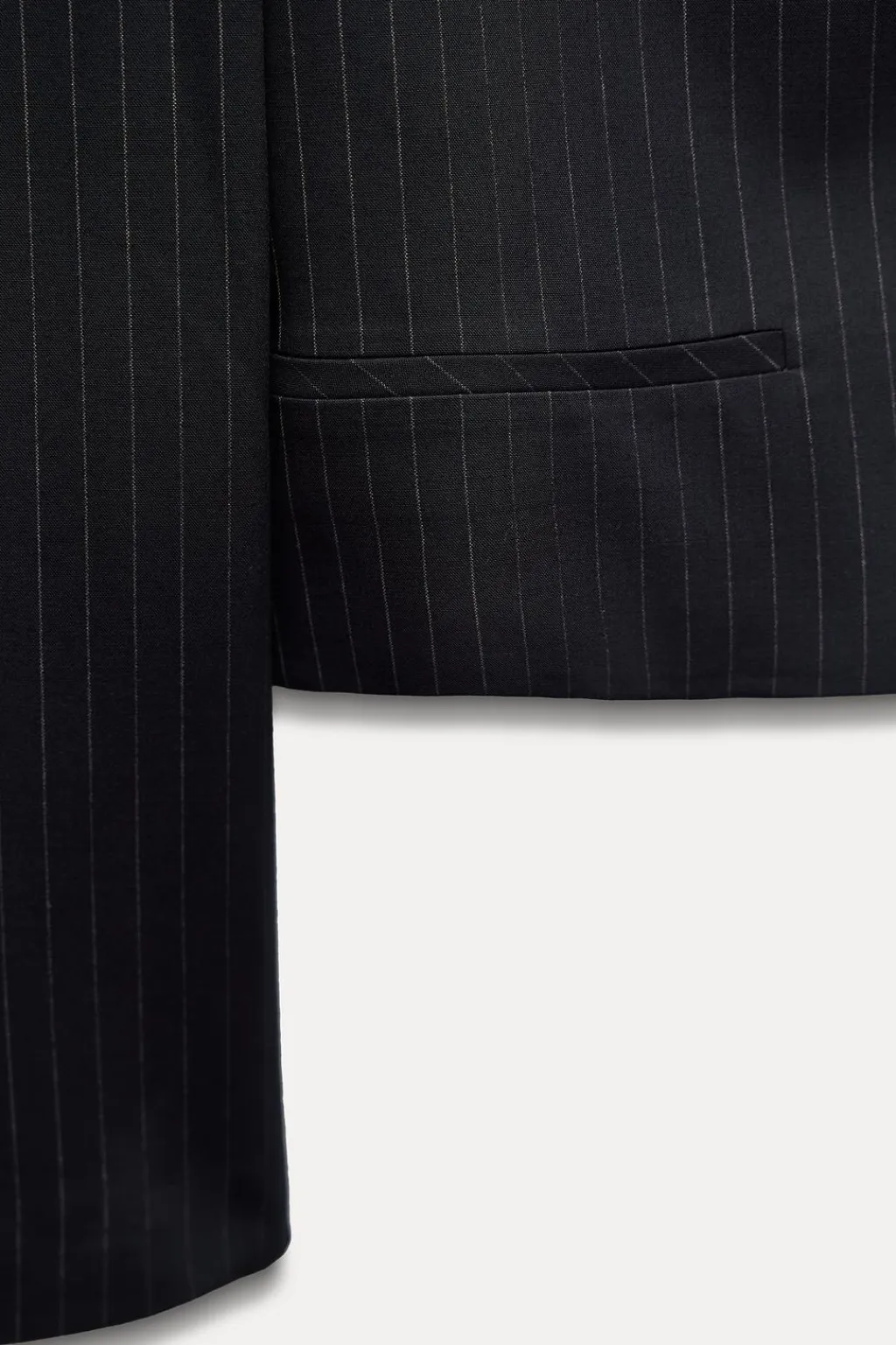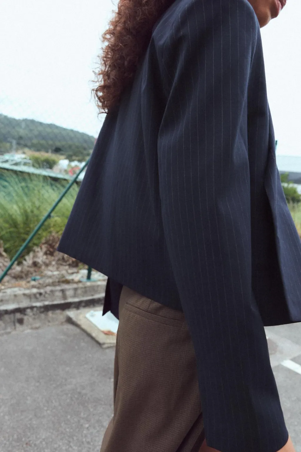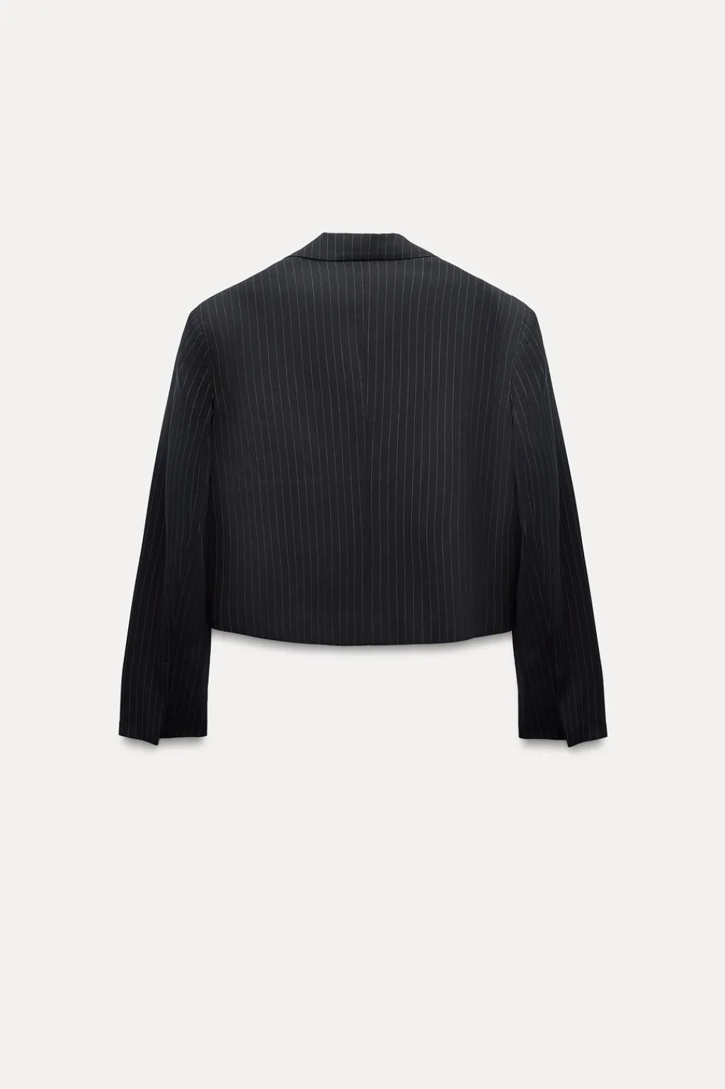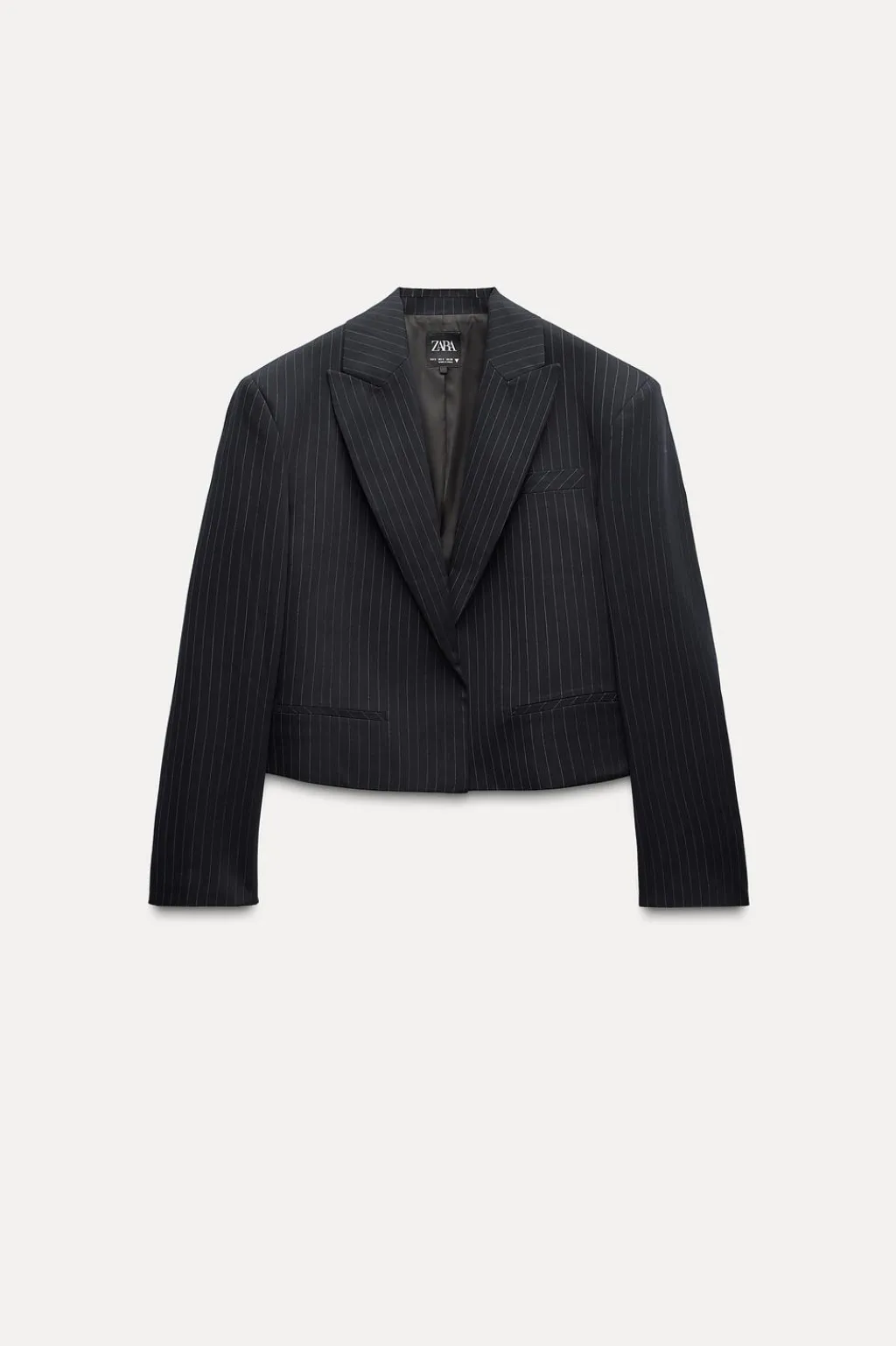 Blazer corta oversize de cuello solapa. Manga larga con hombreras. Falsos bolsillos de vivo en delantero. Forro interior.