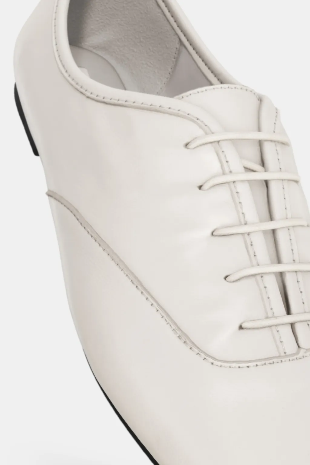 Zapato plano tipo blucher en piel. Cierre mediante cordones. Acabado en punta cuadrada.