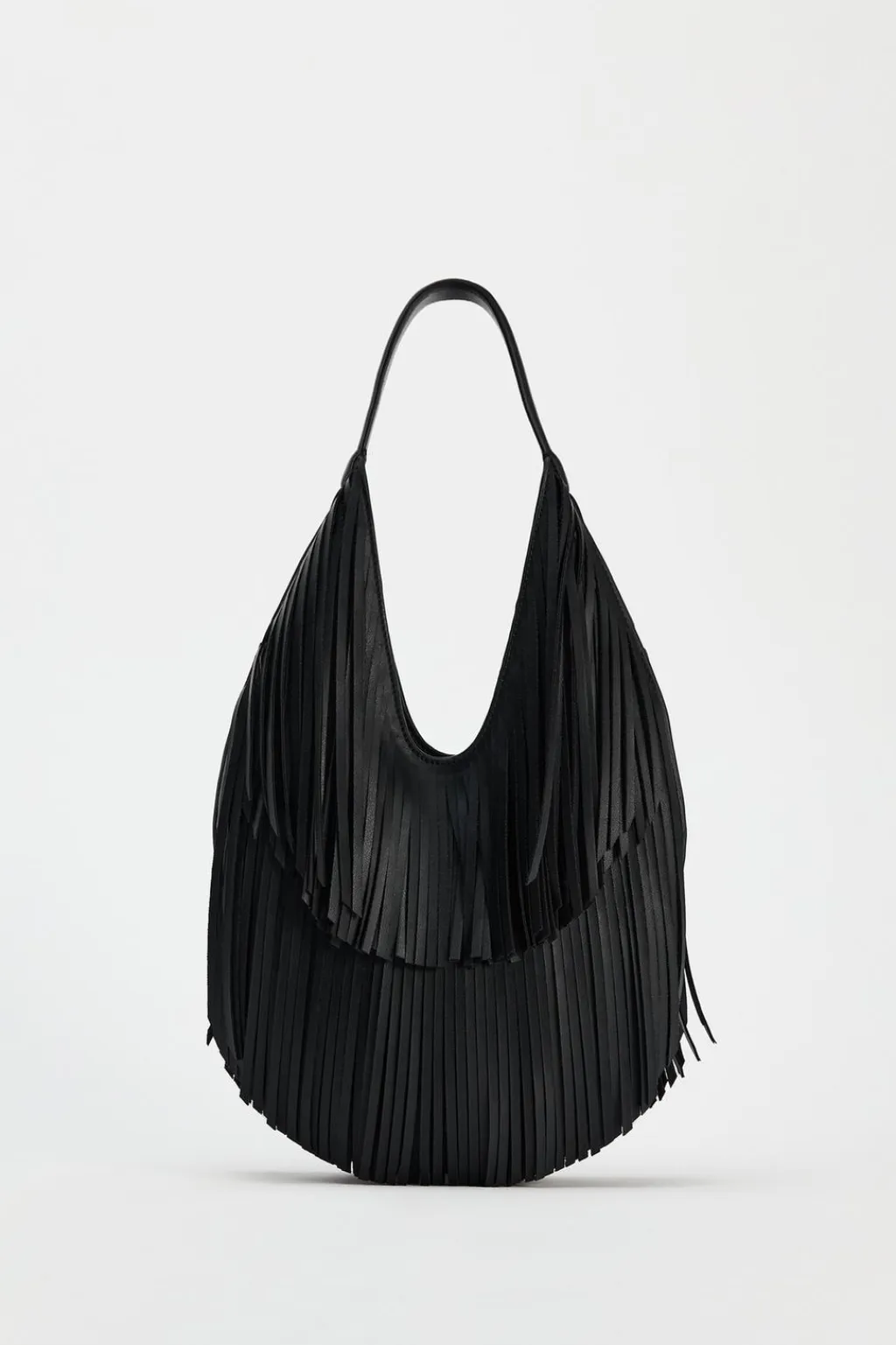 Bolso formato de hombro. Detalle de flecos en el cuerpo. Asa de hombro. Bolsillo interior con cremallera. Cierre mediante imán.
