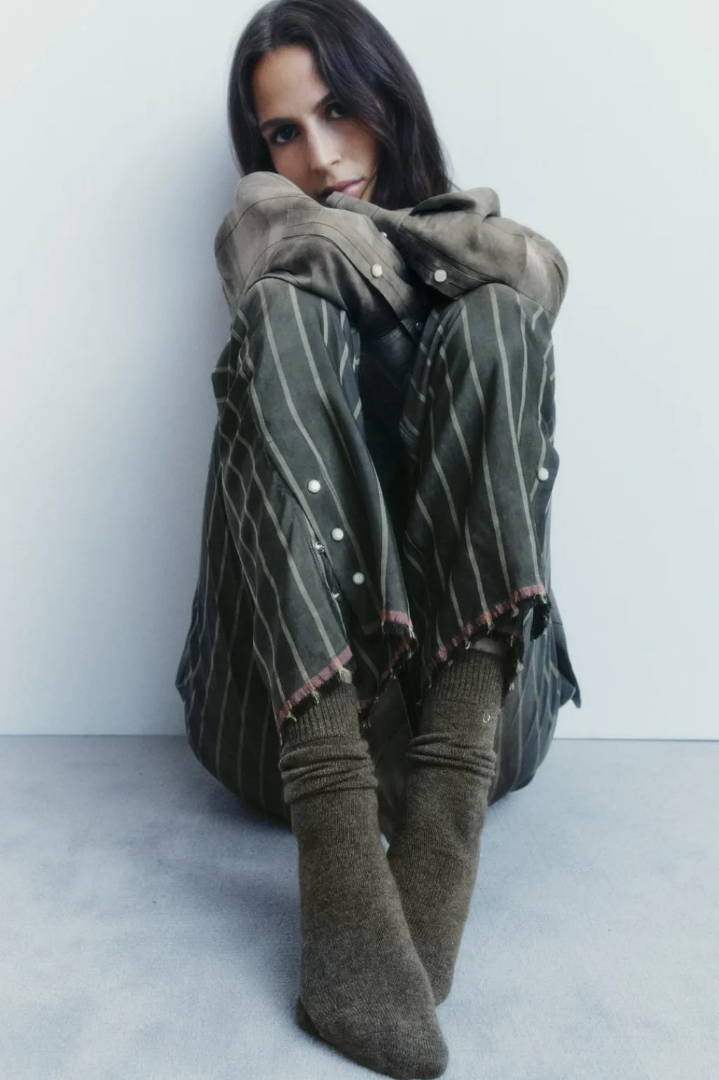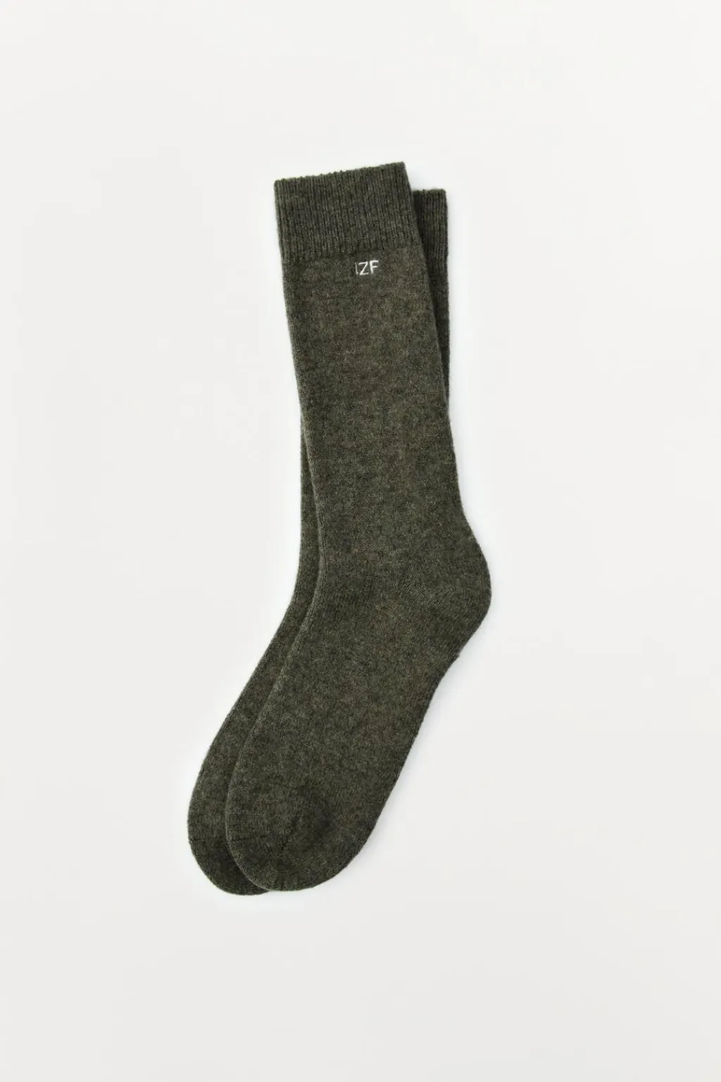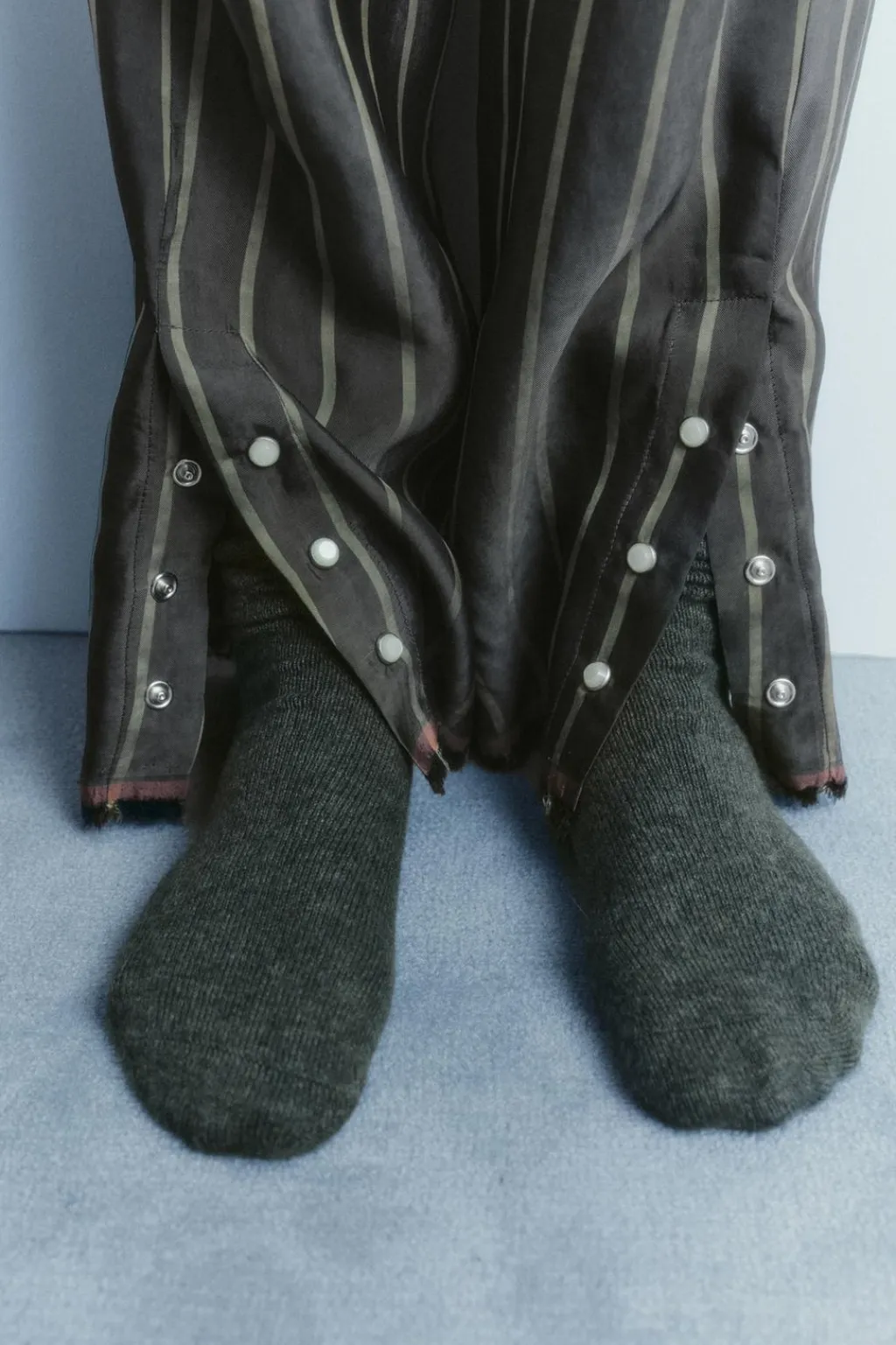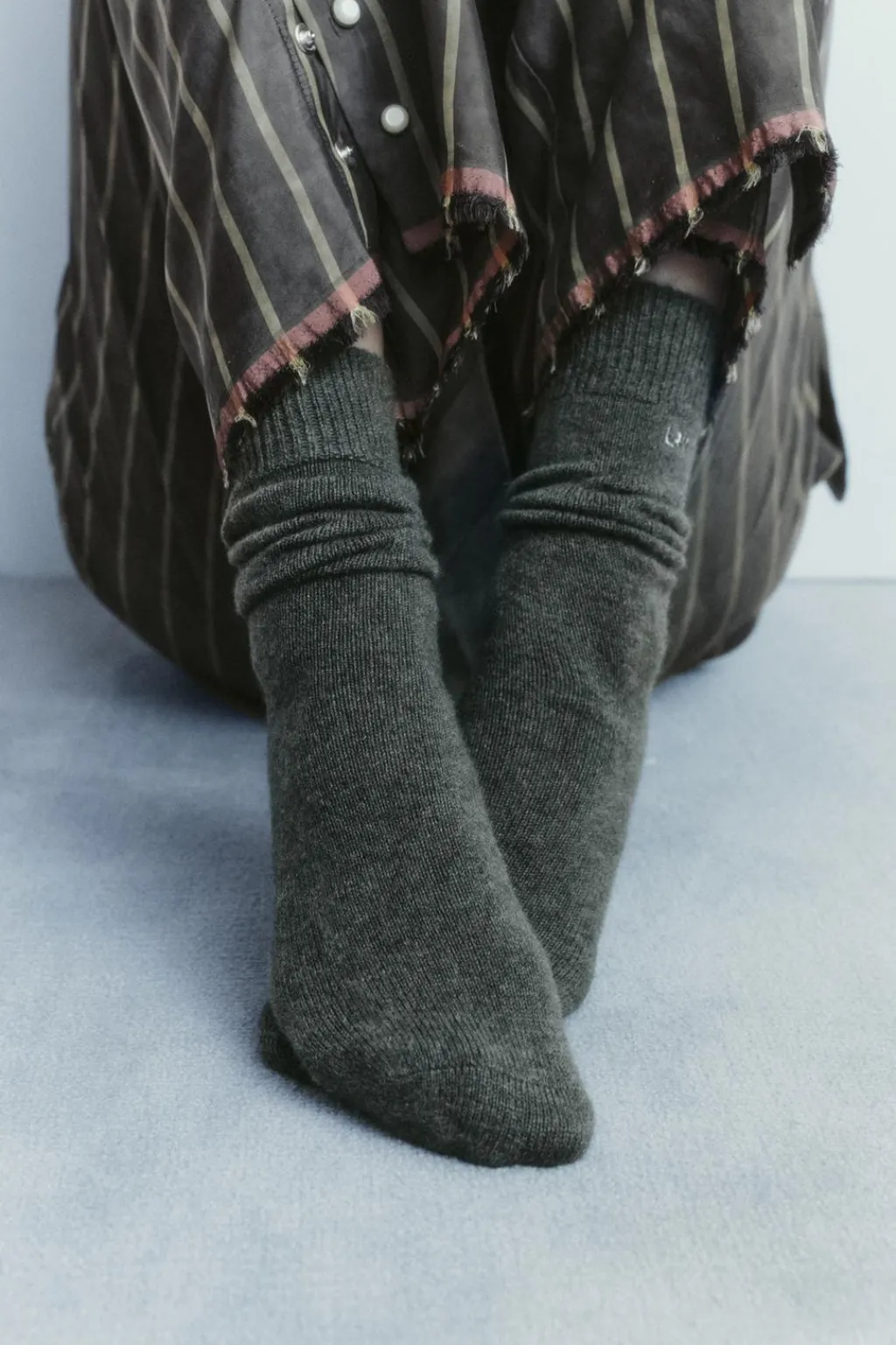 Calcetines altos confeccionados en mezcla de lana y cashmere 10%. Detalle de acabados en rib.
