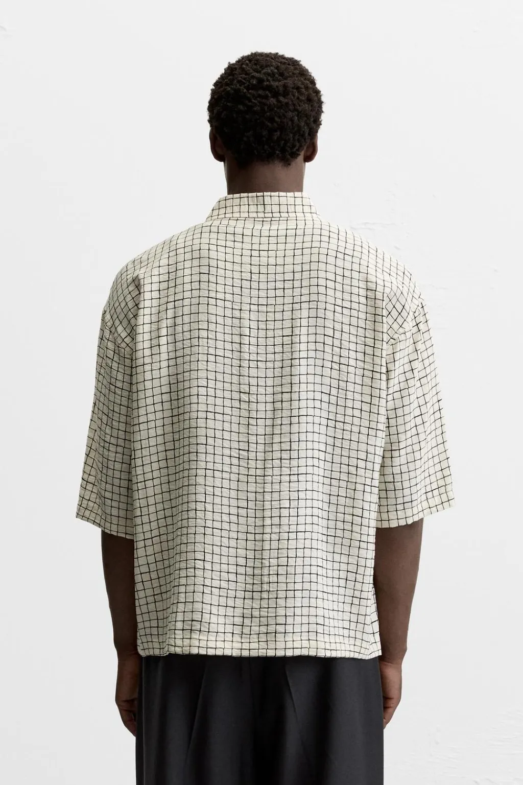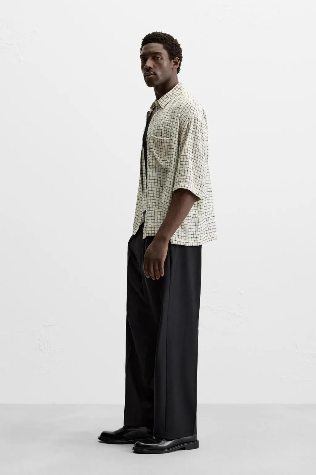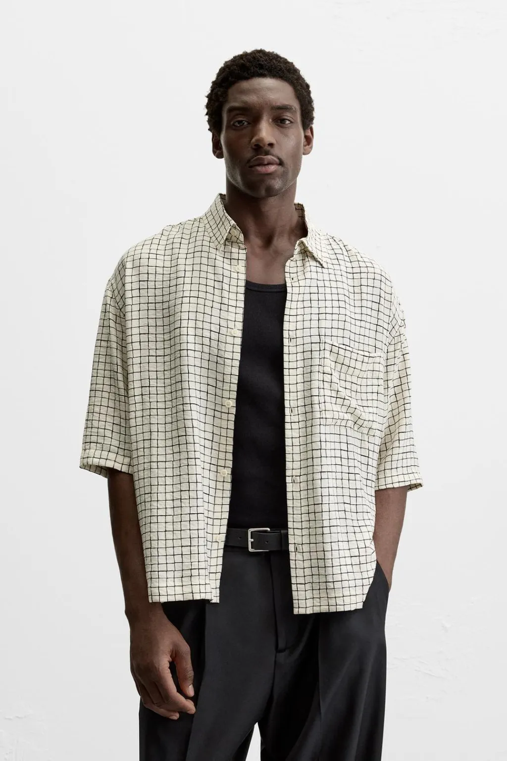 Camisa relaxed fit confeccionada en tejido con mezcla de viscosa. Cuello solapa y manga corta. Bolsillo plastrón en pecho. Cierre frontal de botonadura.