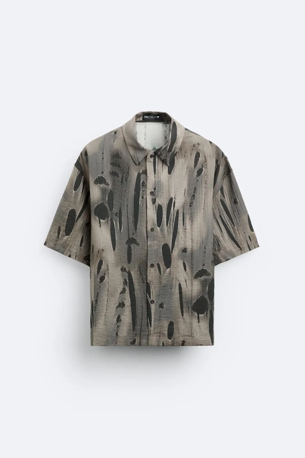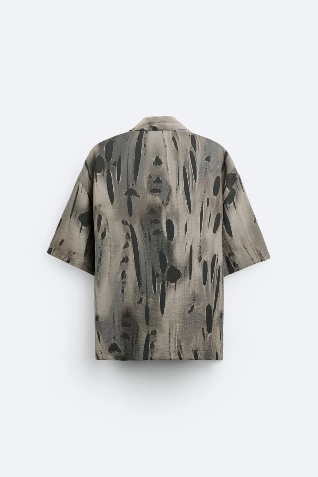 Camisa boxy fit confeccionada en tejido fluido con mezcla de viscosa. Cuello solapa y manga corta. Cierre frontal de botonadura.
