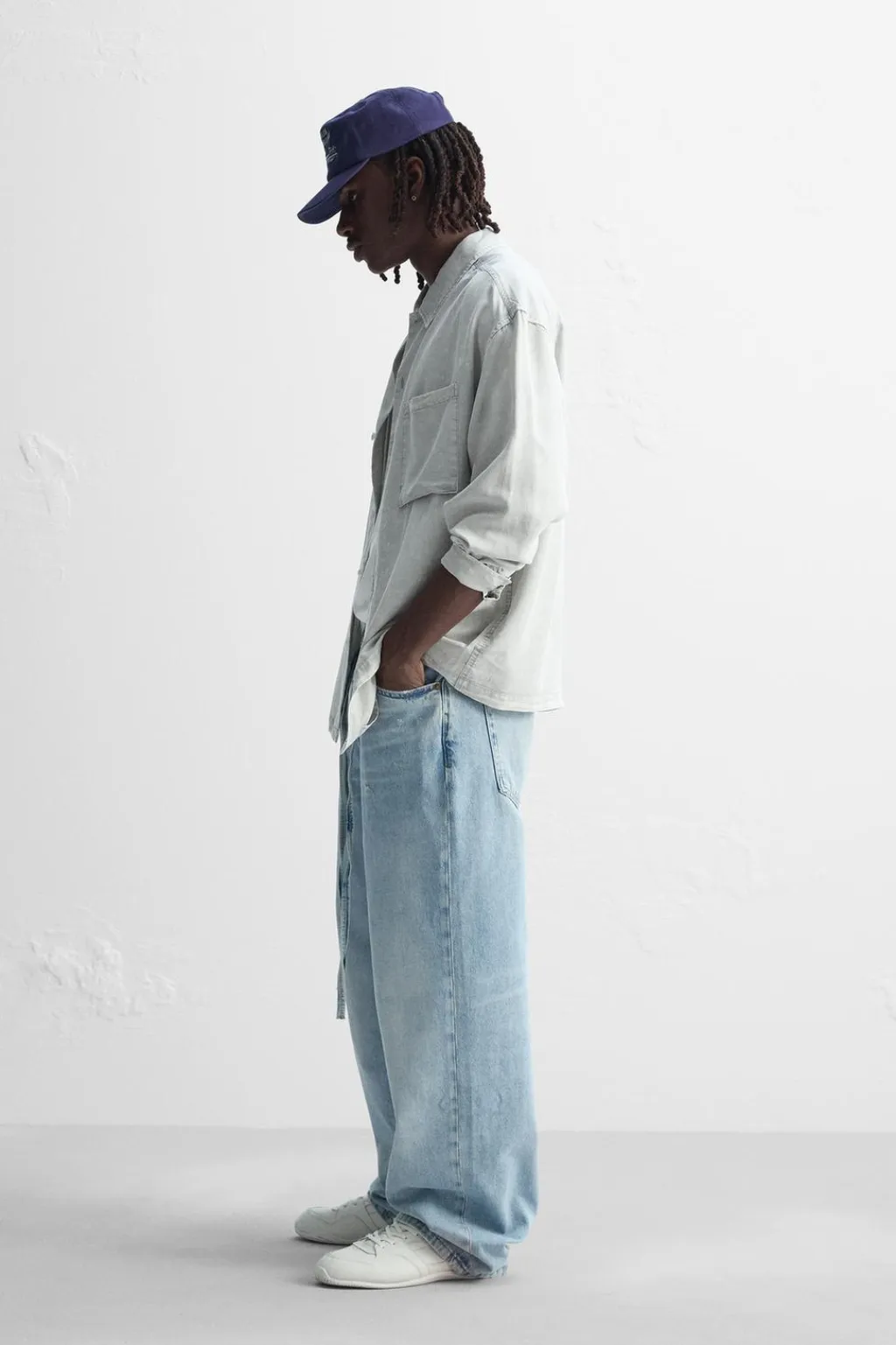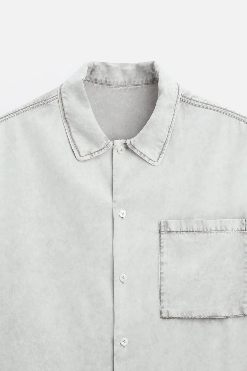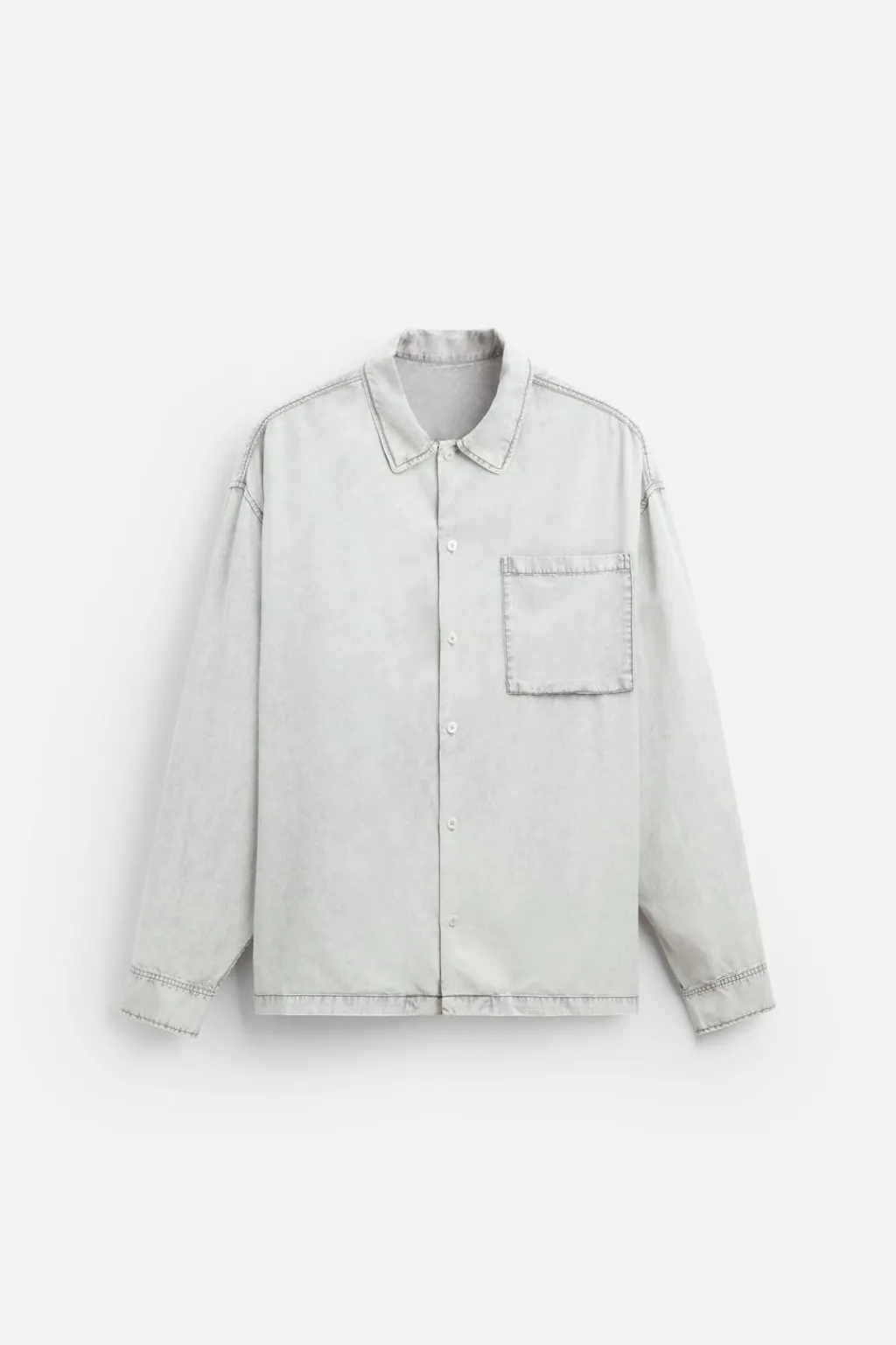 Camisa relaxed fit confeccionada en tejido de lyocell. Cuello solapa y manga larga acabada en puño con botón. Bolsillo de plastrón en pecho. Efecto lavado. Cierre frontal de botonadura.