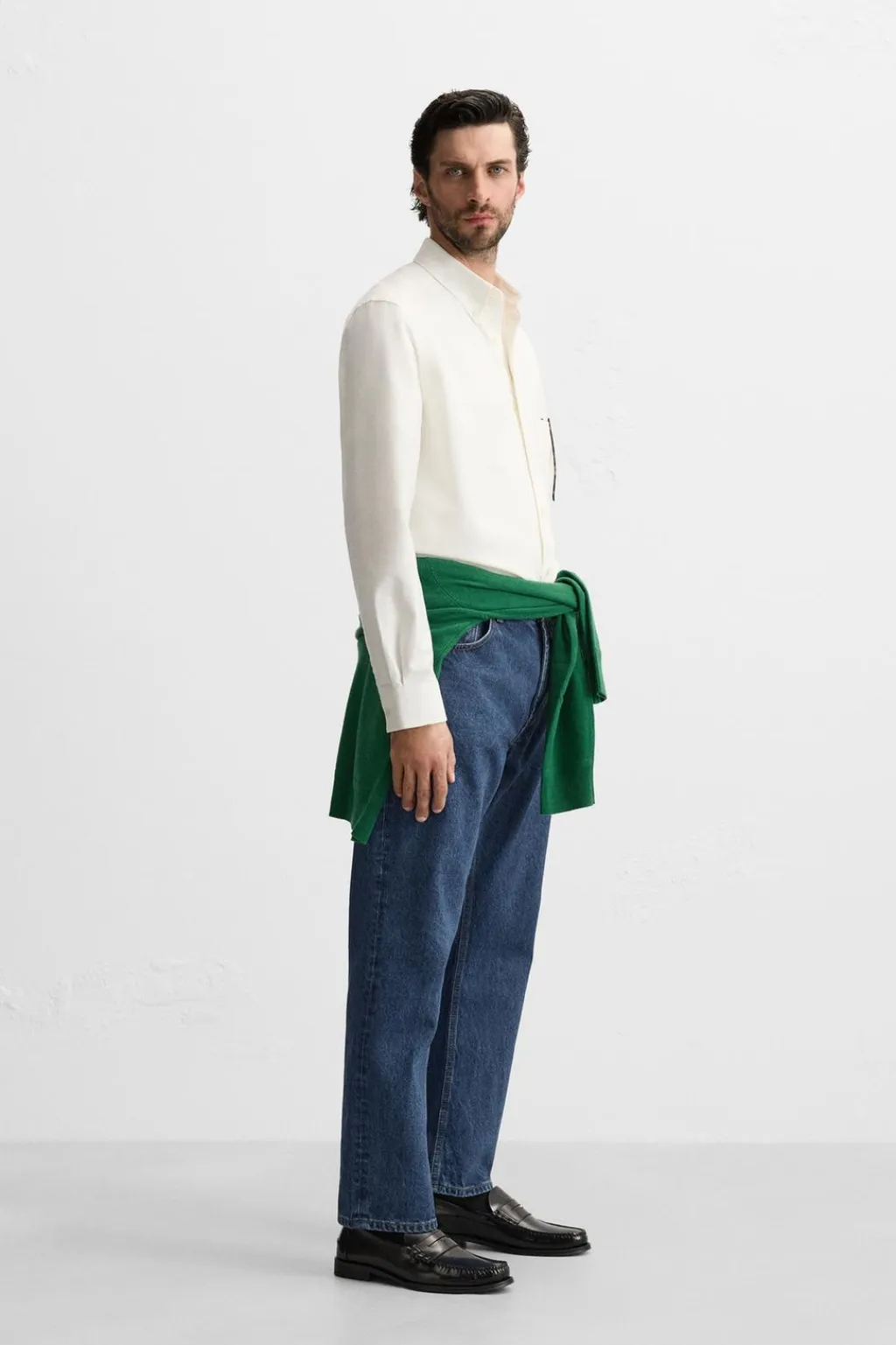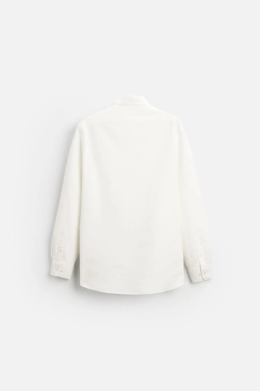 Camisa regular fit confeccionada en tejido de algodón. Cuello abotonado y manga larga acabada en puño con botón. Cierre frontal de botonadura.