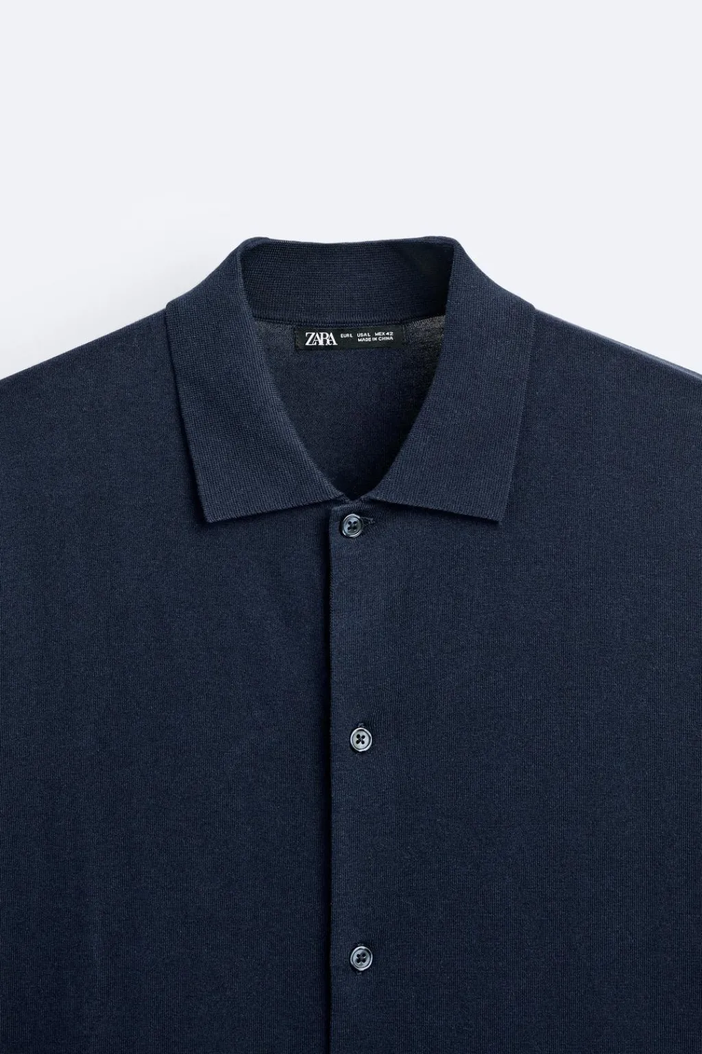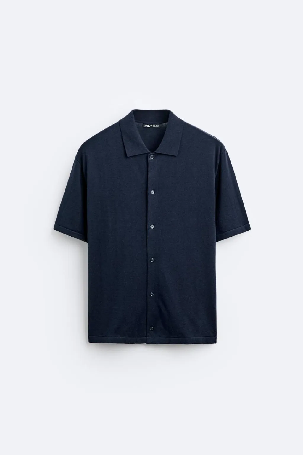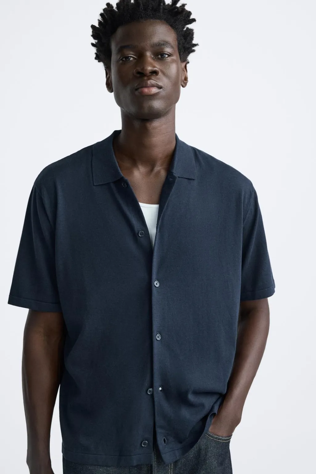 Camisa de punto tejida en hilatura con mezcla de algodón y lyocell. Cuello solapa y manga corta. Cierre frontal de botonadura.