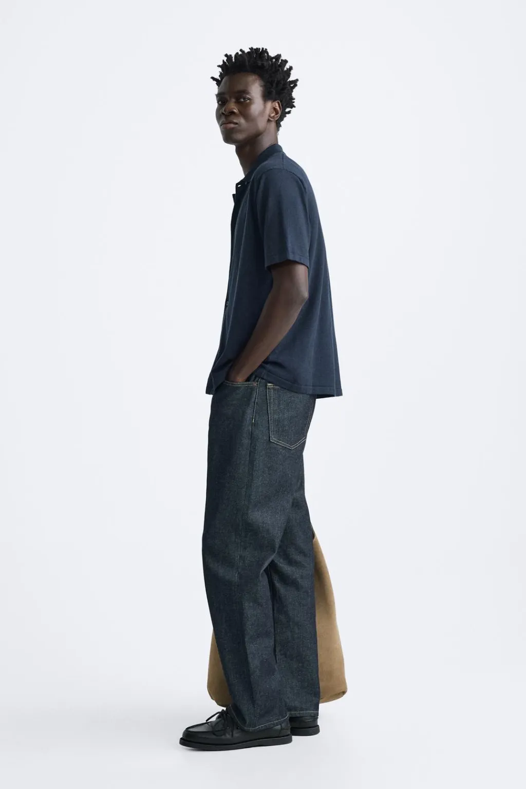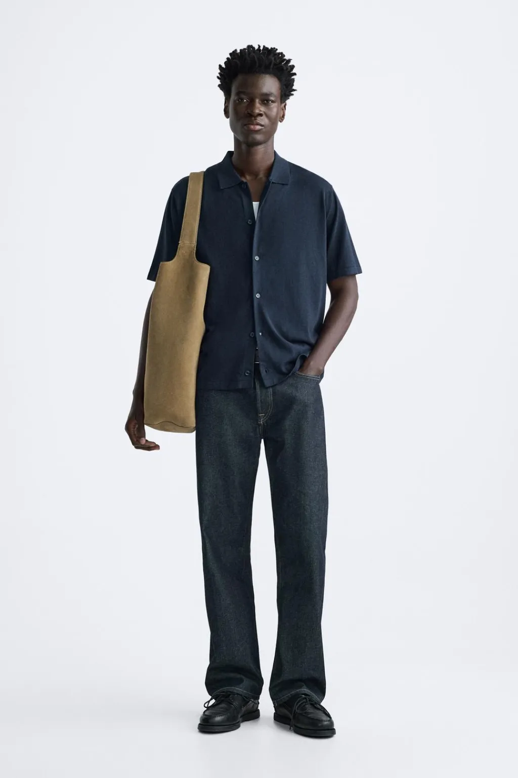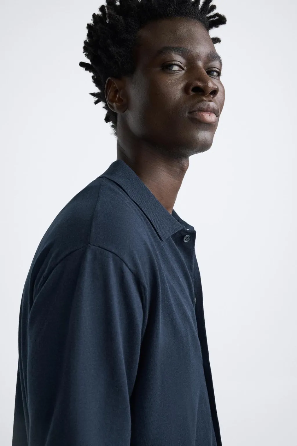 Camisa de punto tejida en hilatura con mezcla de algodón y lyocell. Cuello solapa y manga corta. Cierre frontal de botonadura.