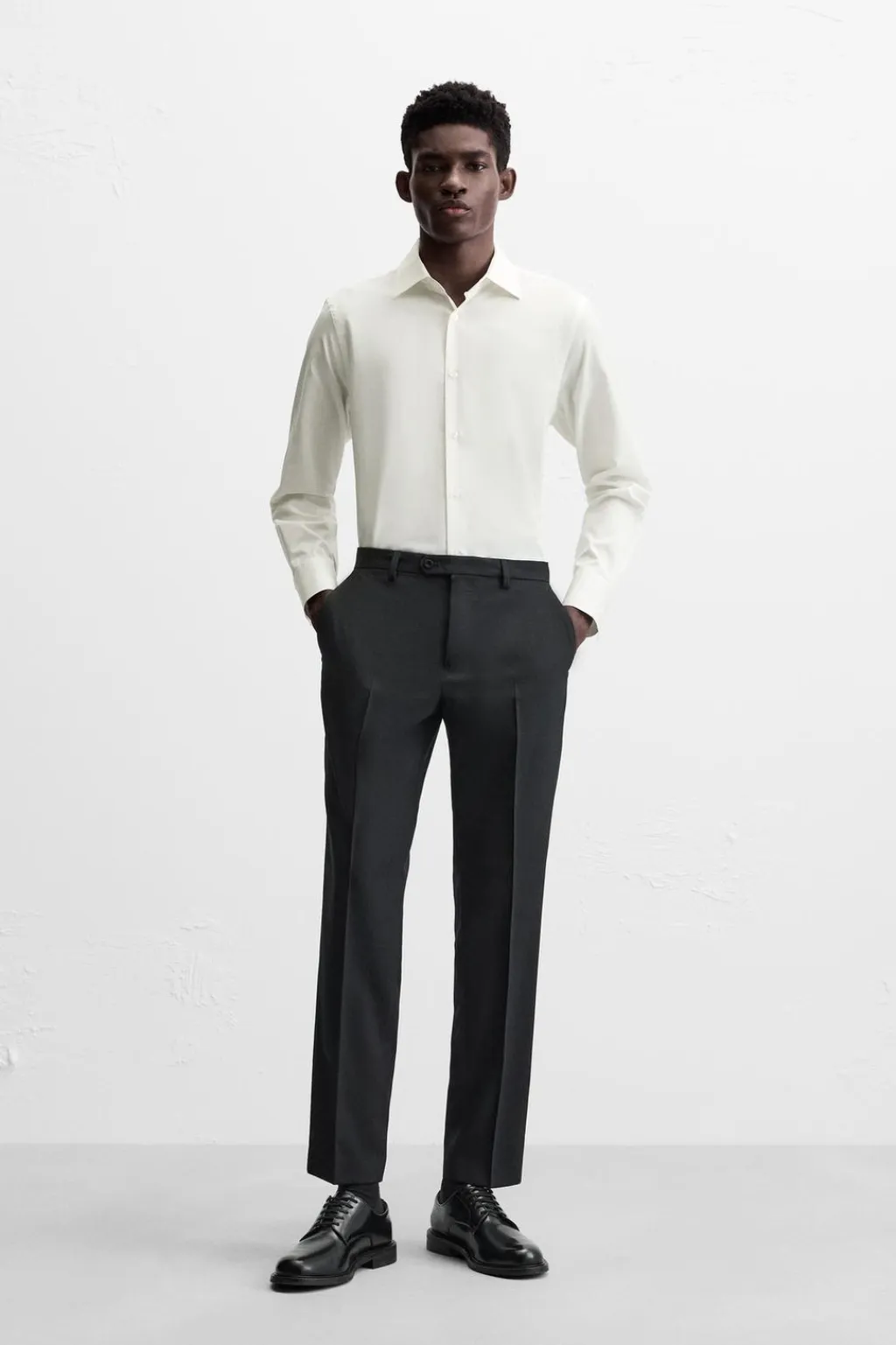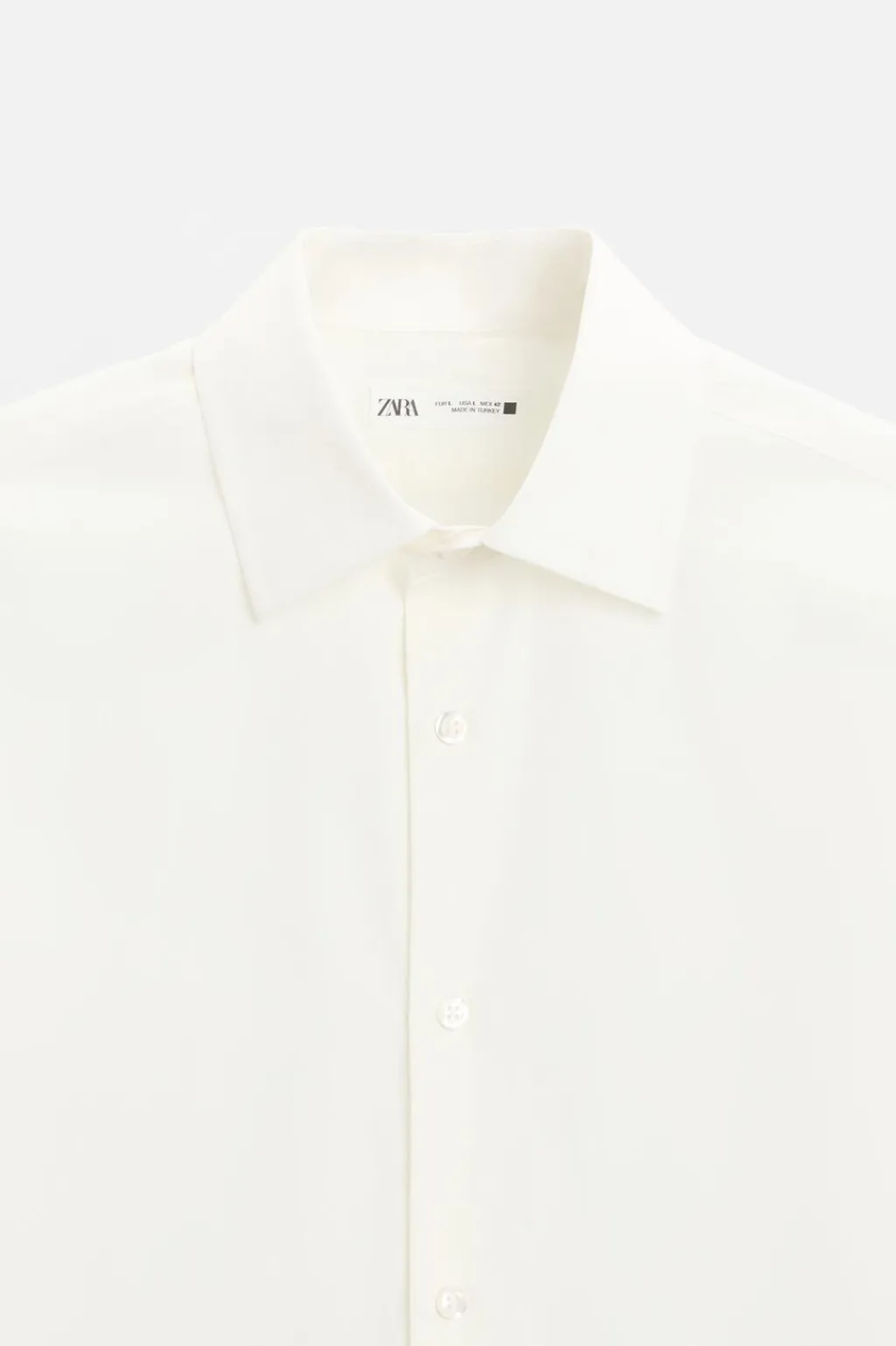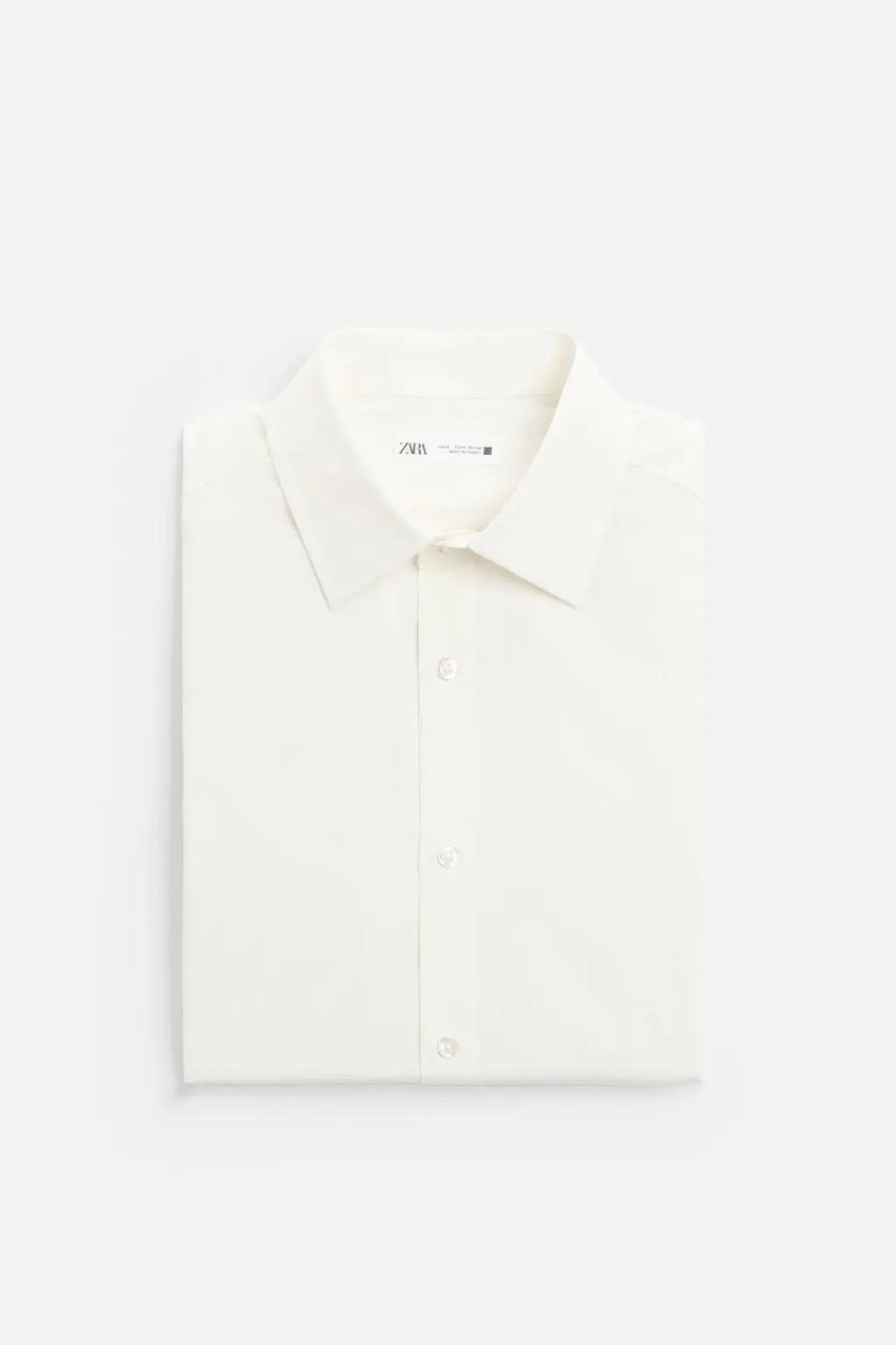 Camisa slim fit confeccionada en tejido de algodón. Cuello italiano y manga larga acabada en puño con botón. Cierre frontal de botonadura.