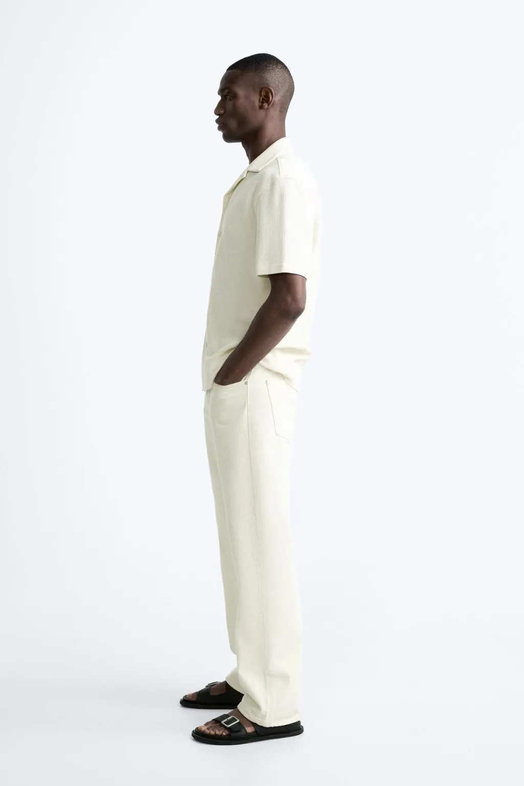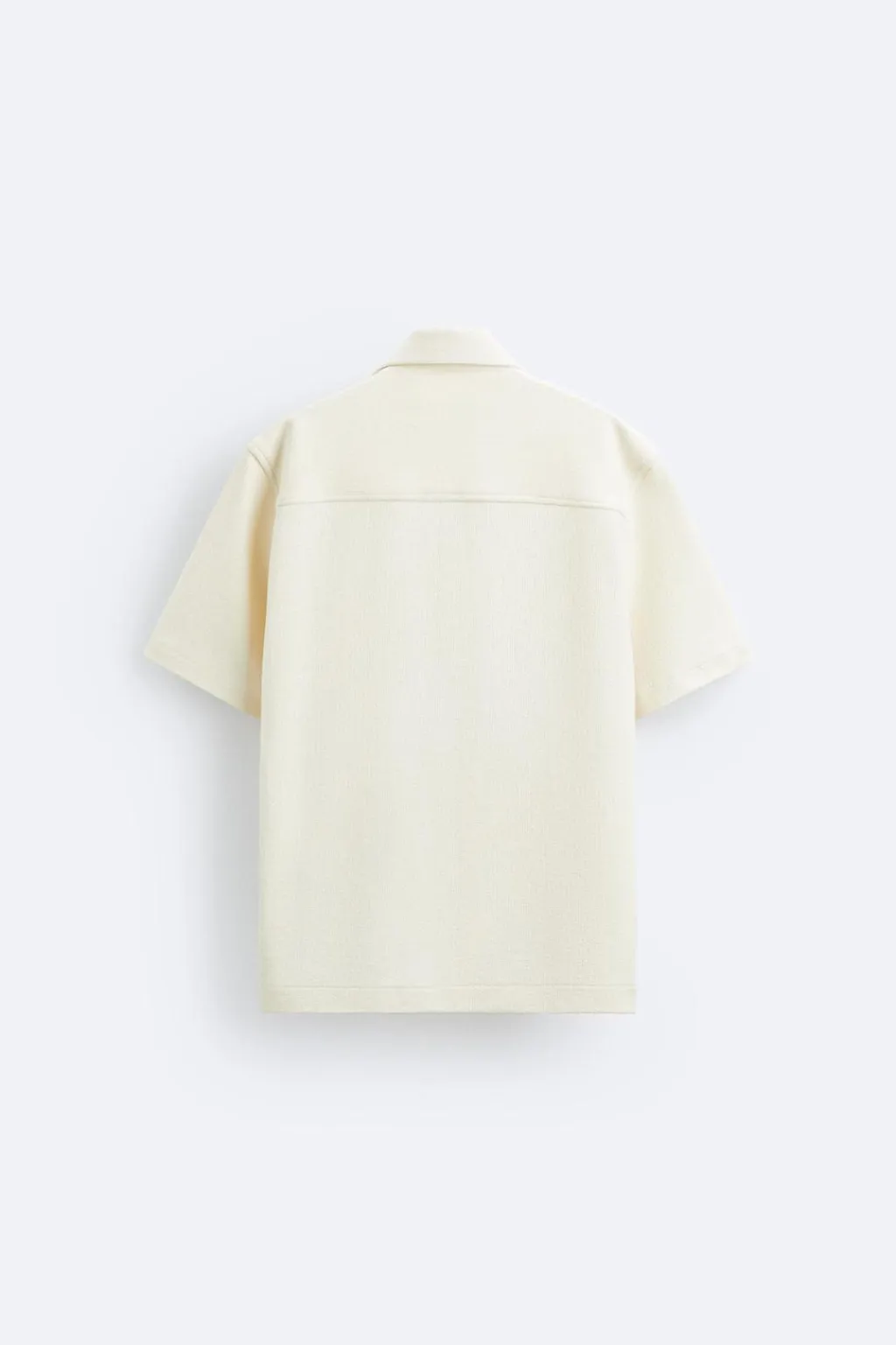 Camisa relaxed fit confeccionada en tejido con mezcla de algodón. Cuello bowling y manga corta. Bajo con aberturas laterales. Cierre frontal de botonadura.