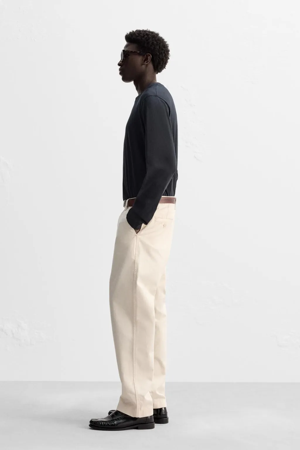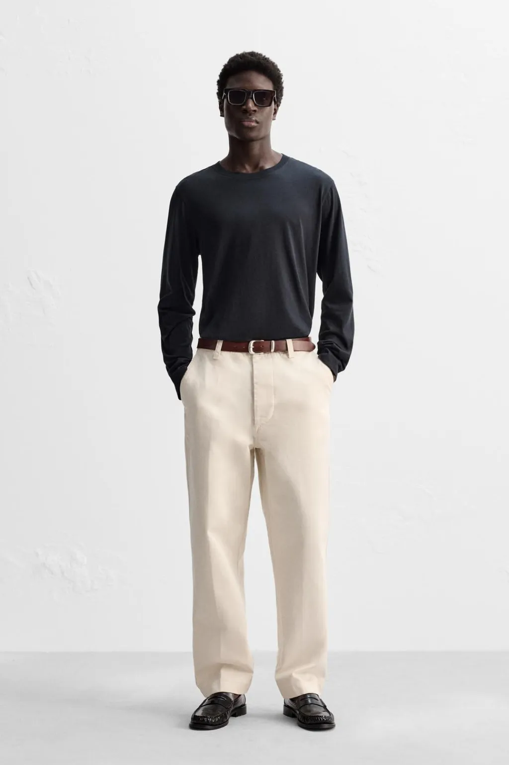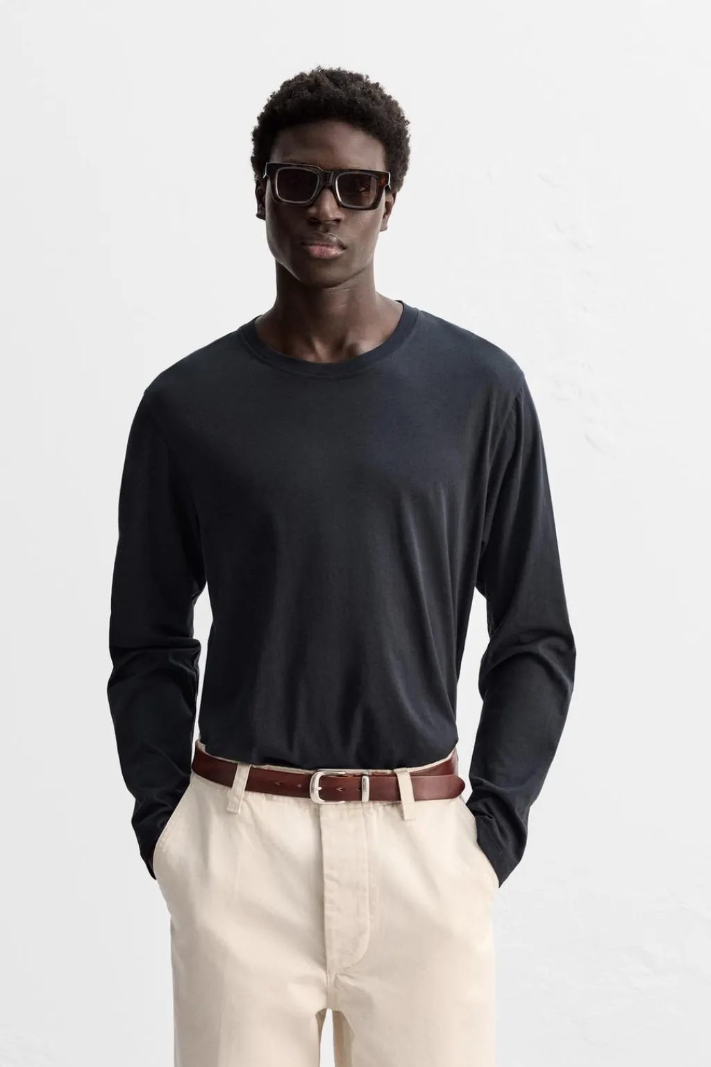 Camiseta regular fit confeccionada en tejido de algodón ligero. Cuello redondo y manga larga.